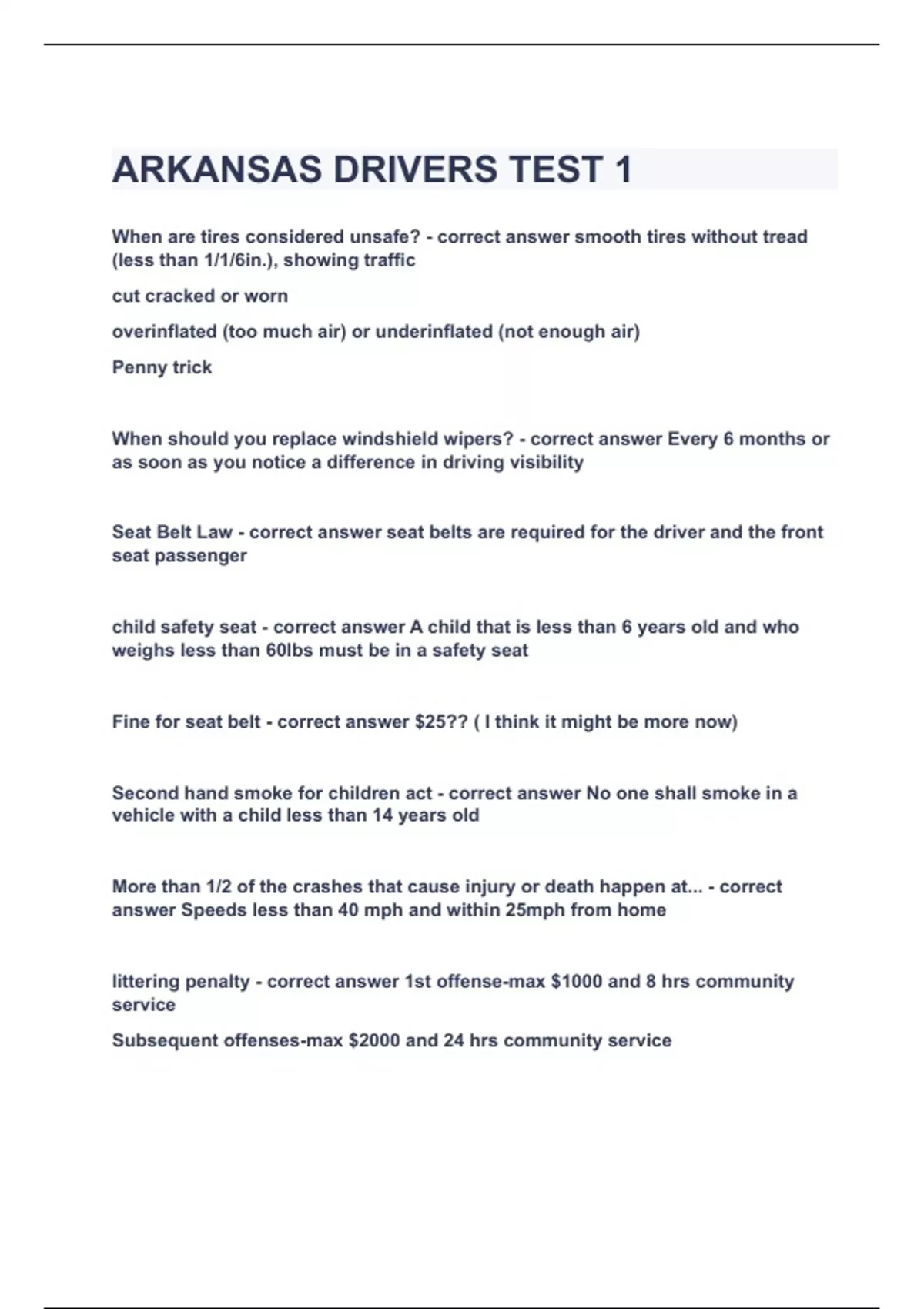 ARKANSAS DRIVERS TEST 1|UPDATED&VERIFIED|100% SOLVED|GUARANTEED SUCCESS