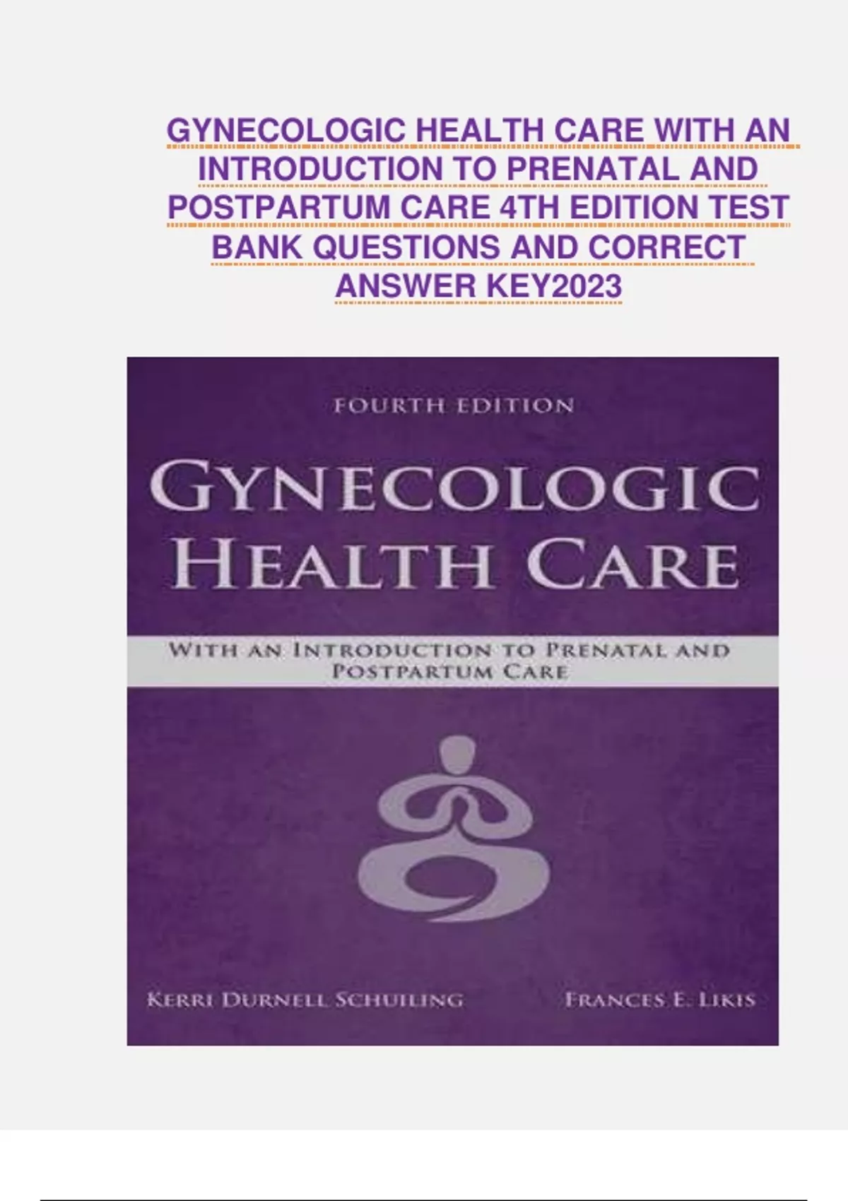 GYNECOLOGIC HEALTH CARE WITH AN INTRODUCTION TO PRENATAL AND POSTPARTUM CARE 4TH EDITION TEST BANK QUESTIONS AND CORRECT ANSWER KEY2023