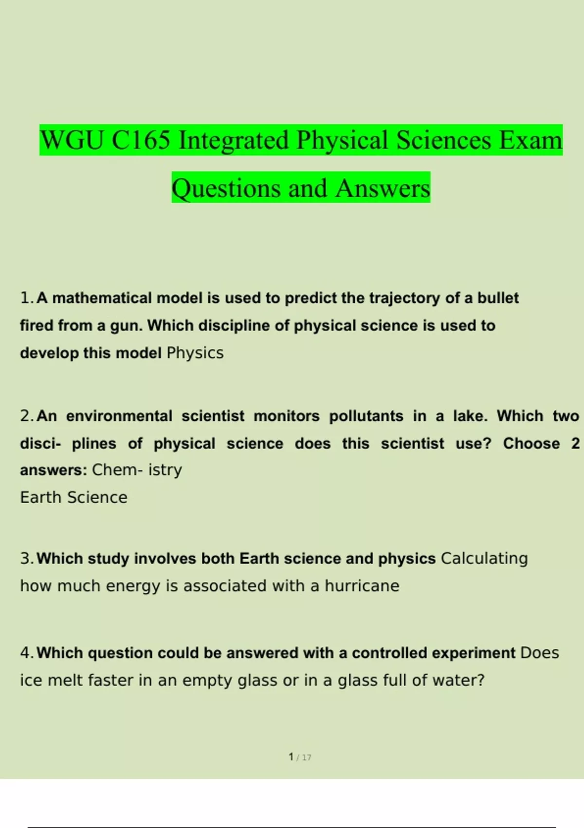 WGU C165 Integrated Physical Sciences Exam Questions and Answers Verified Answers Attained Grade A+