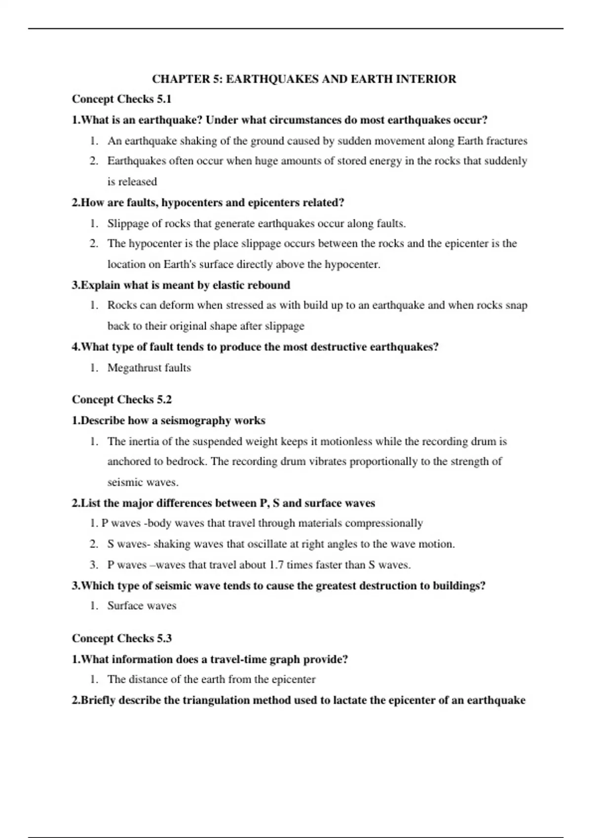 Earth Science: Chapter 5 Check Questions and Answers