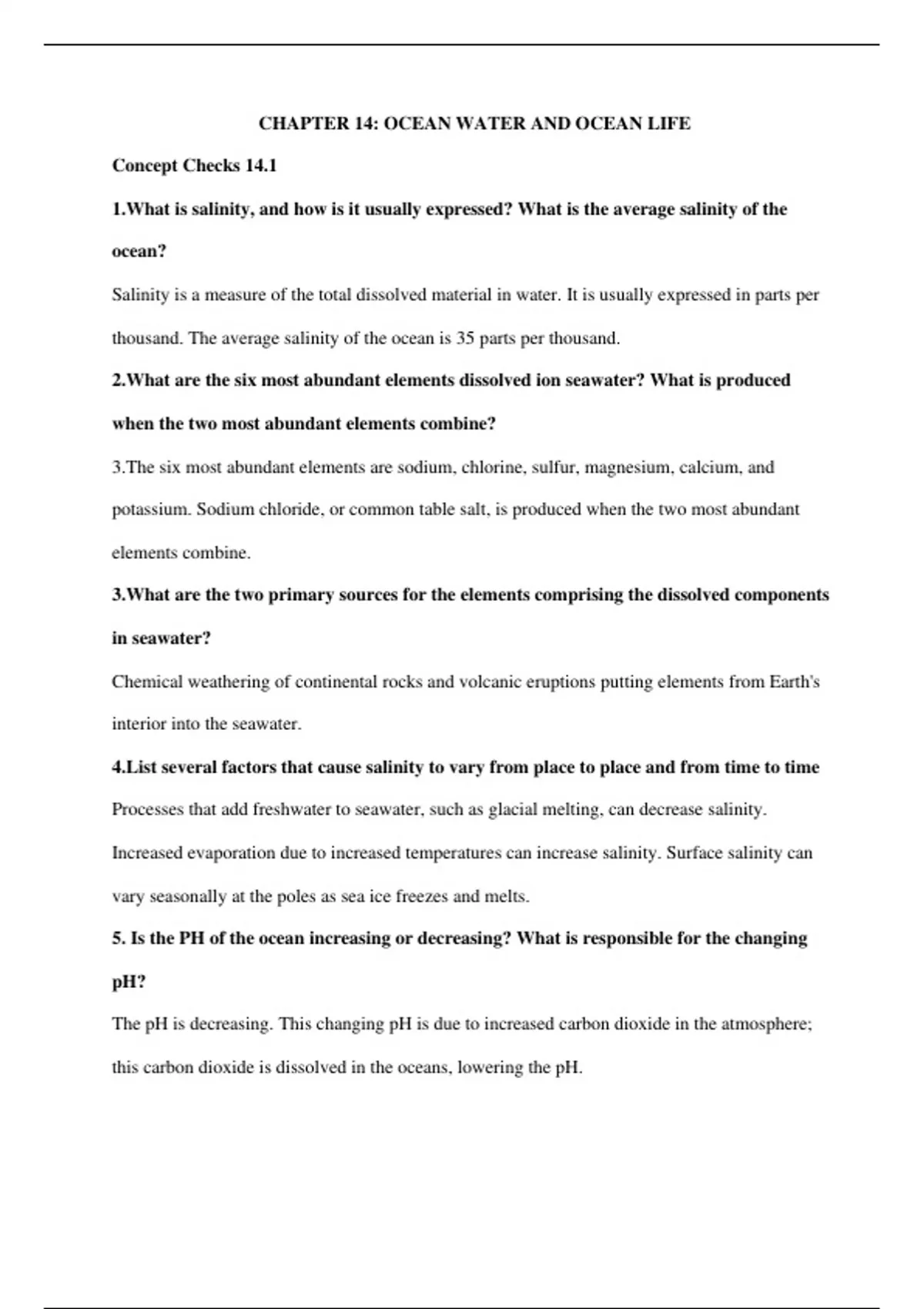 GEOL 101- Earth Science: Chapter 14 Concept Checks Questions & Answers