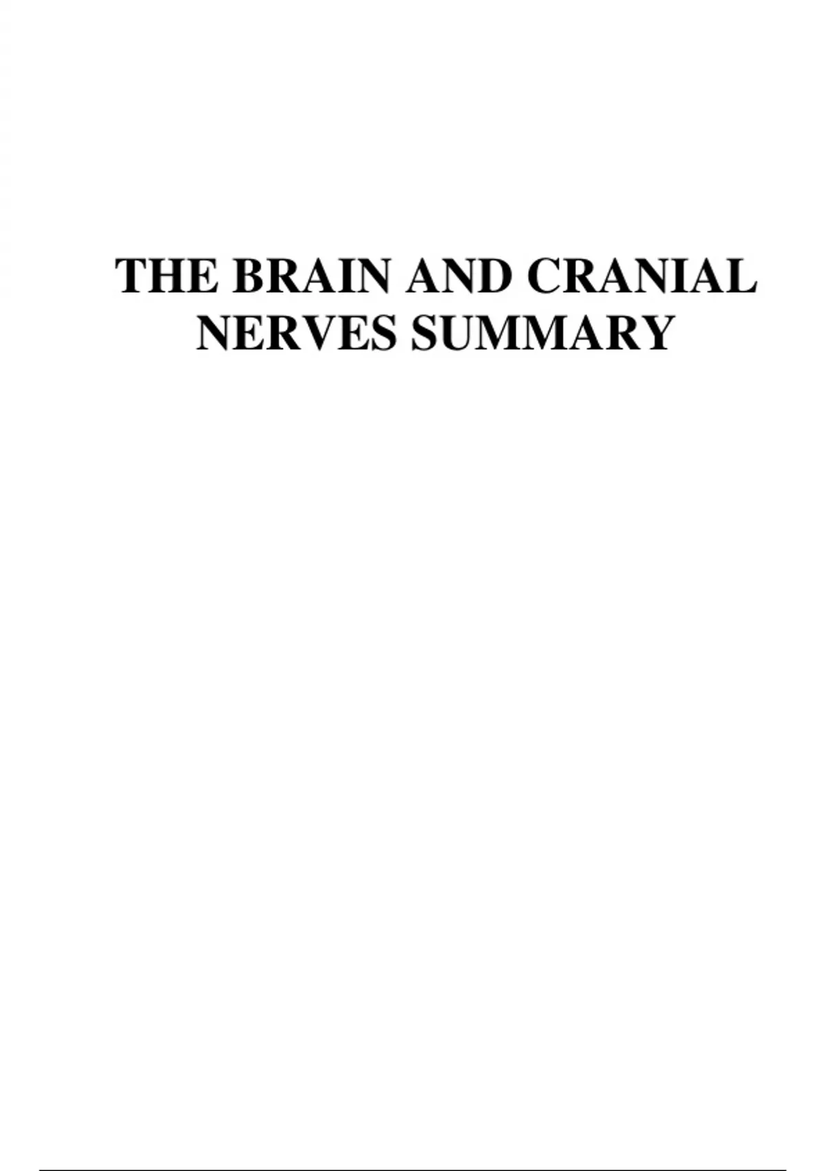 THE BRAIN AND CRANIAL NERVES SUMMARY