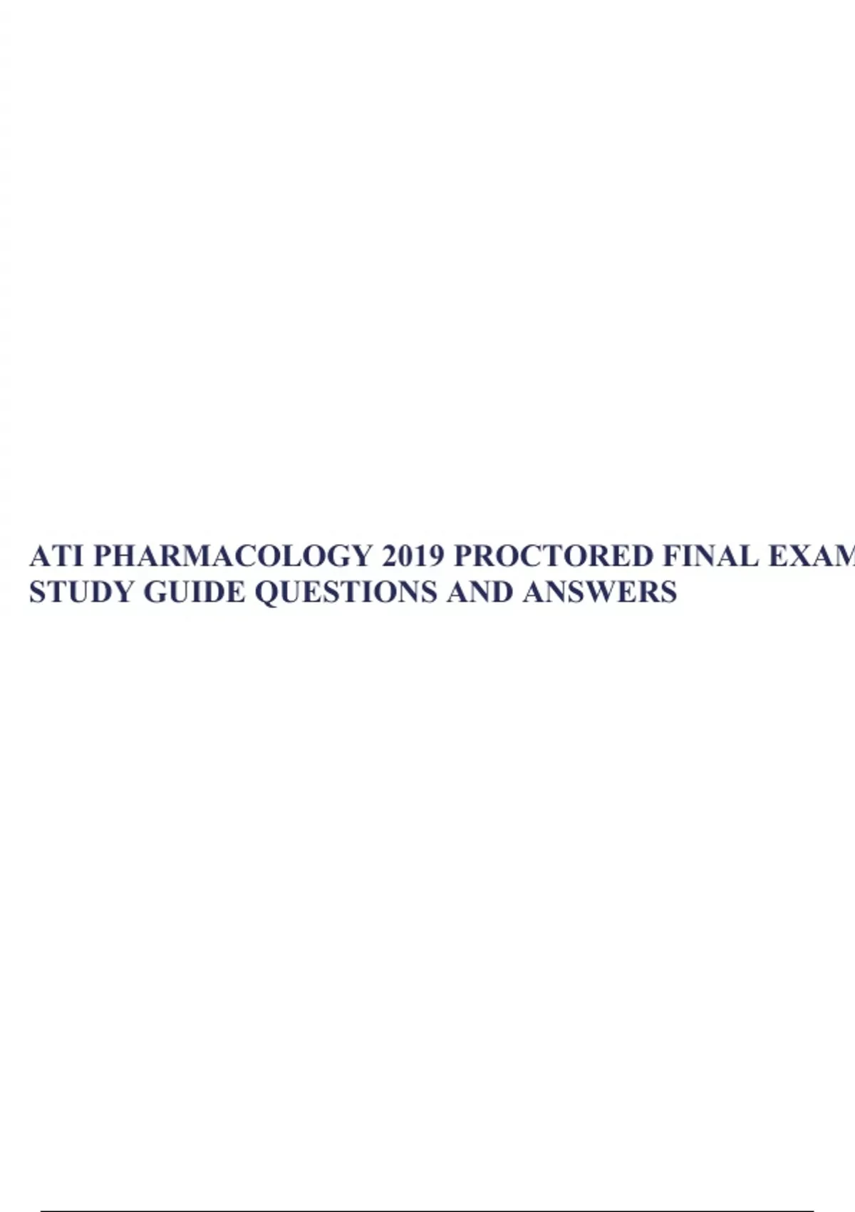 ATI PHARMACOLOGY 2019 PROCTORED FINAL EXAM STUDY GUIDE QUESTIONS AND ANSWERS.