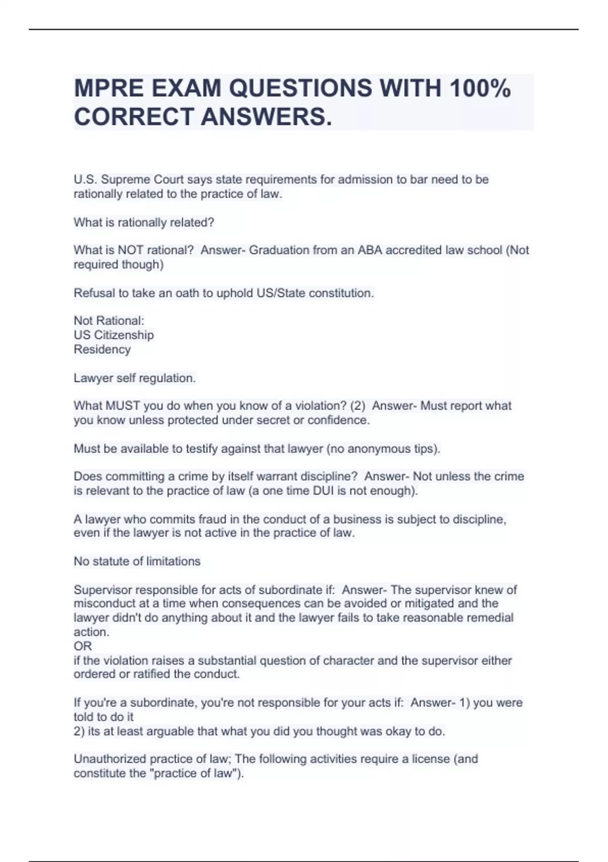 MPRE EXAM QUESTIONS WITH 100% CORRECT ANSWERS.