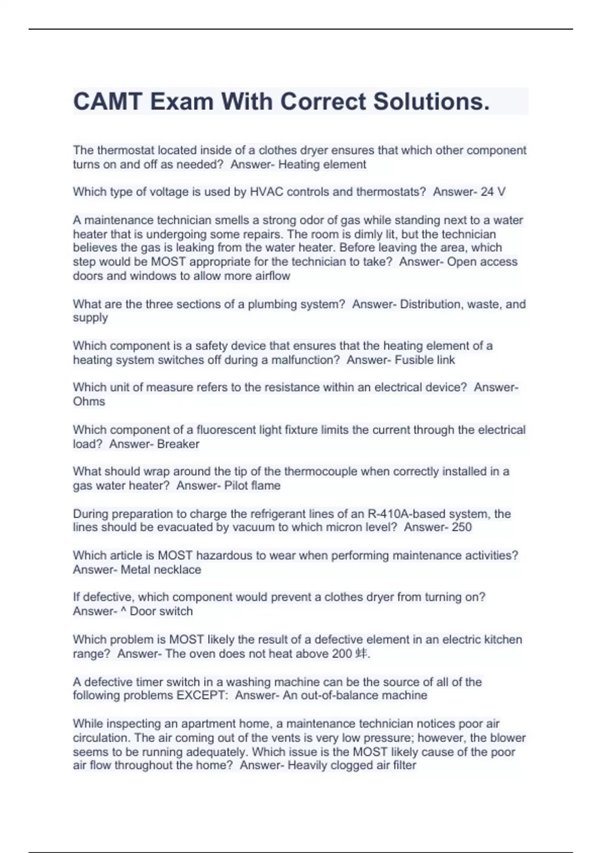 CAMT Exam With Correct Solutions.