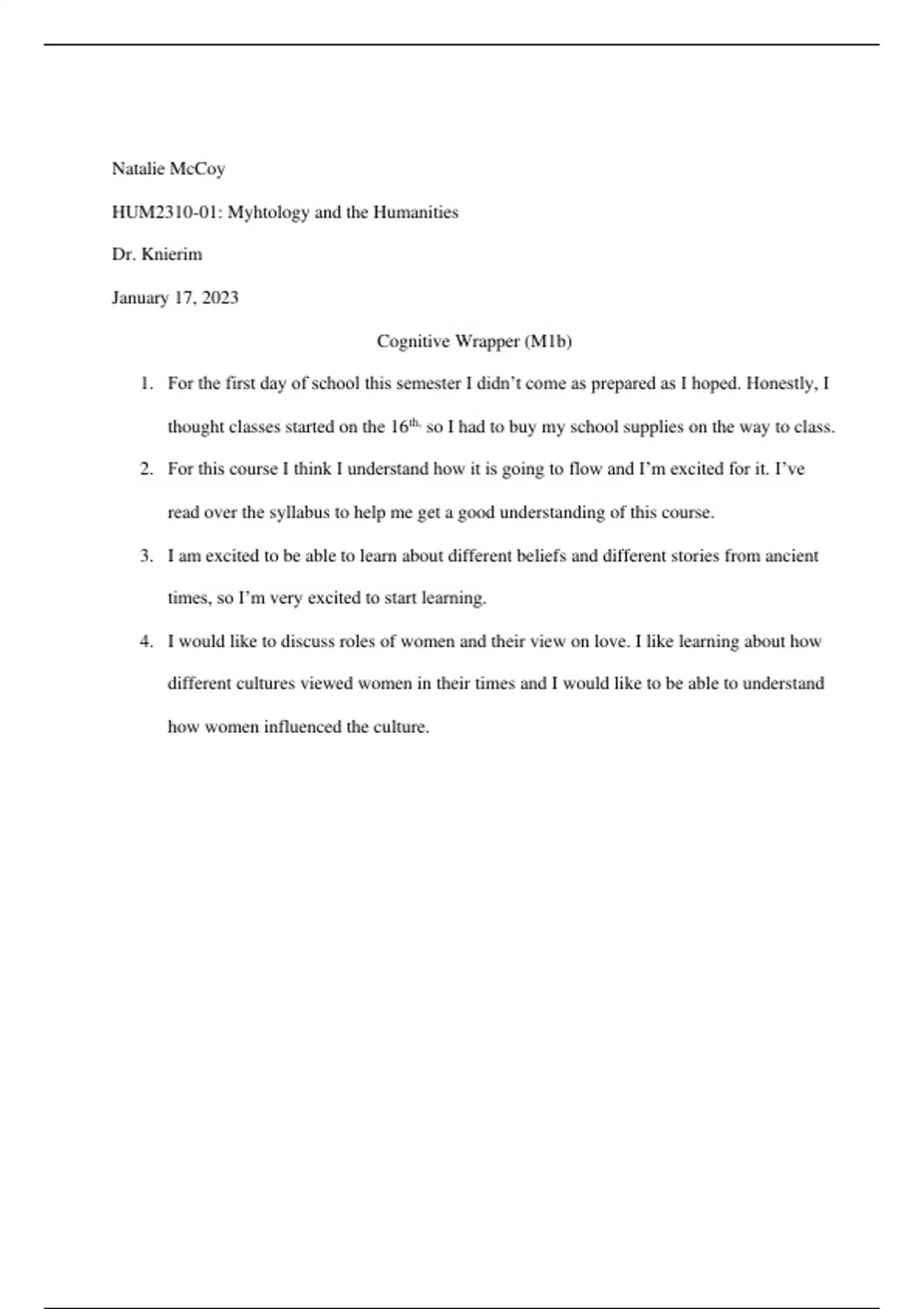 Class notes HUM2310