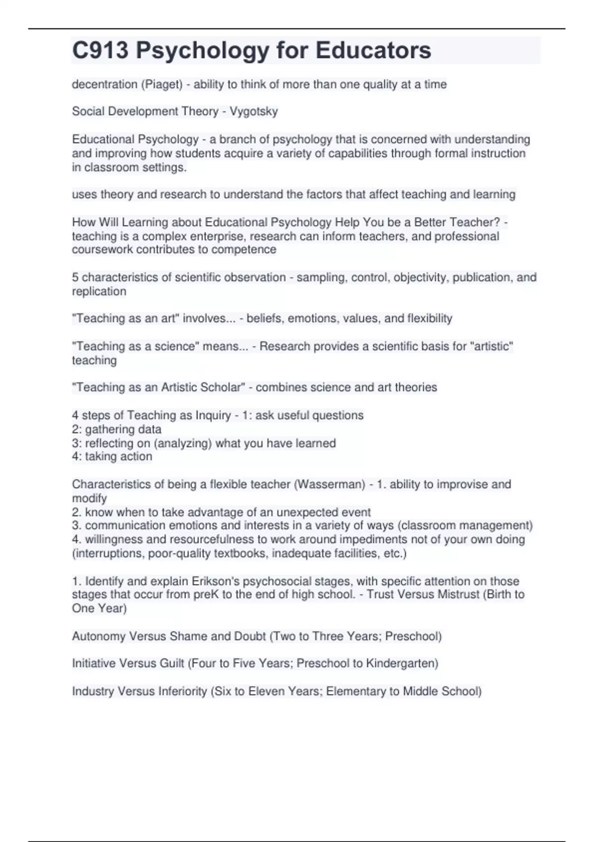 - C913 Psychology for Educators