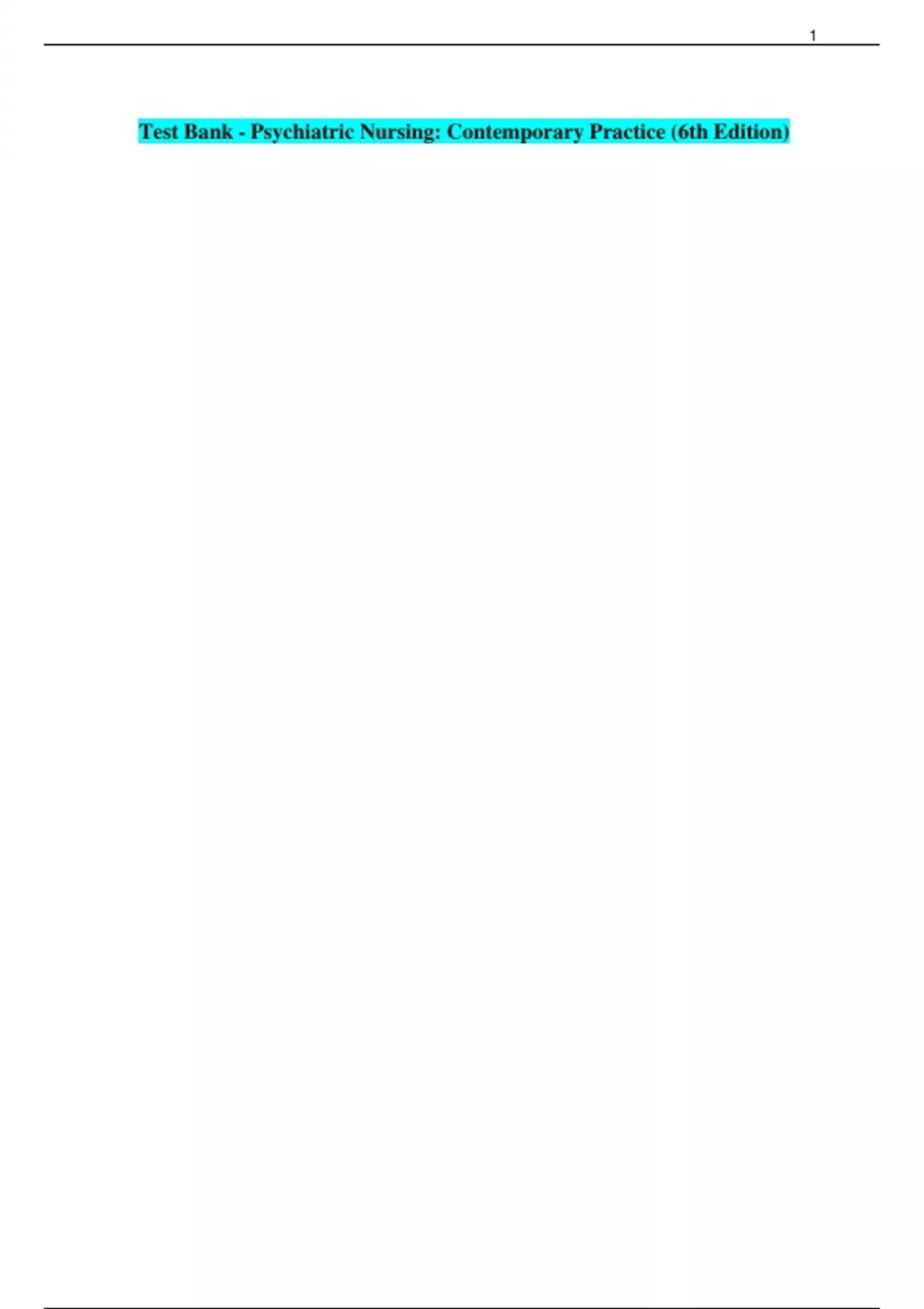 Test Bank - Psychiatric Nursing: Contemporary Practice (6th Edition);CHAPTESR 1- 43 (ALL ANSWERS LISTED BELOW EVERY END OF CHAPTER!!