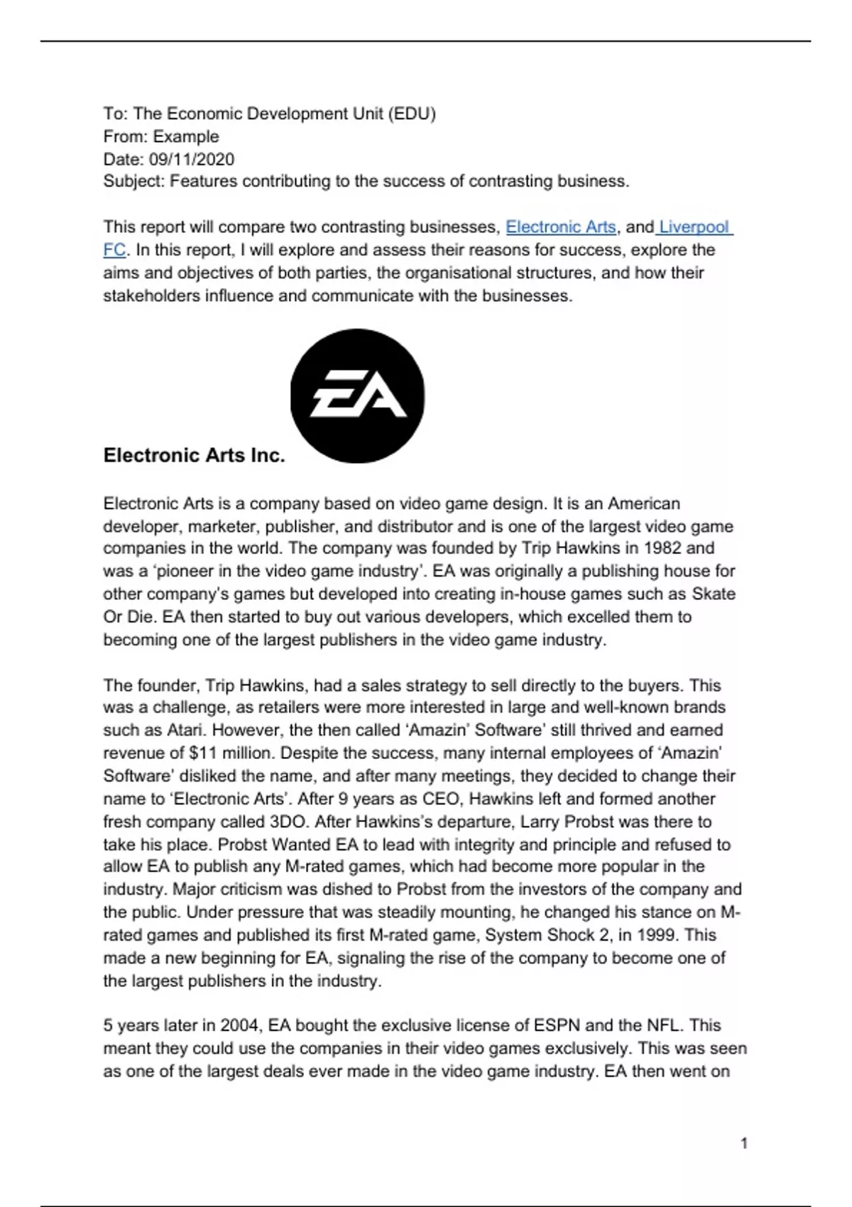 This report will compare two contrasting businesses, Electronic Arts, and Liverpool
