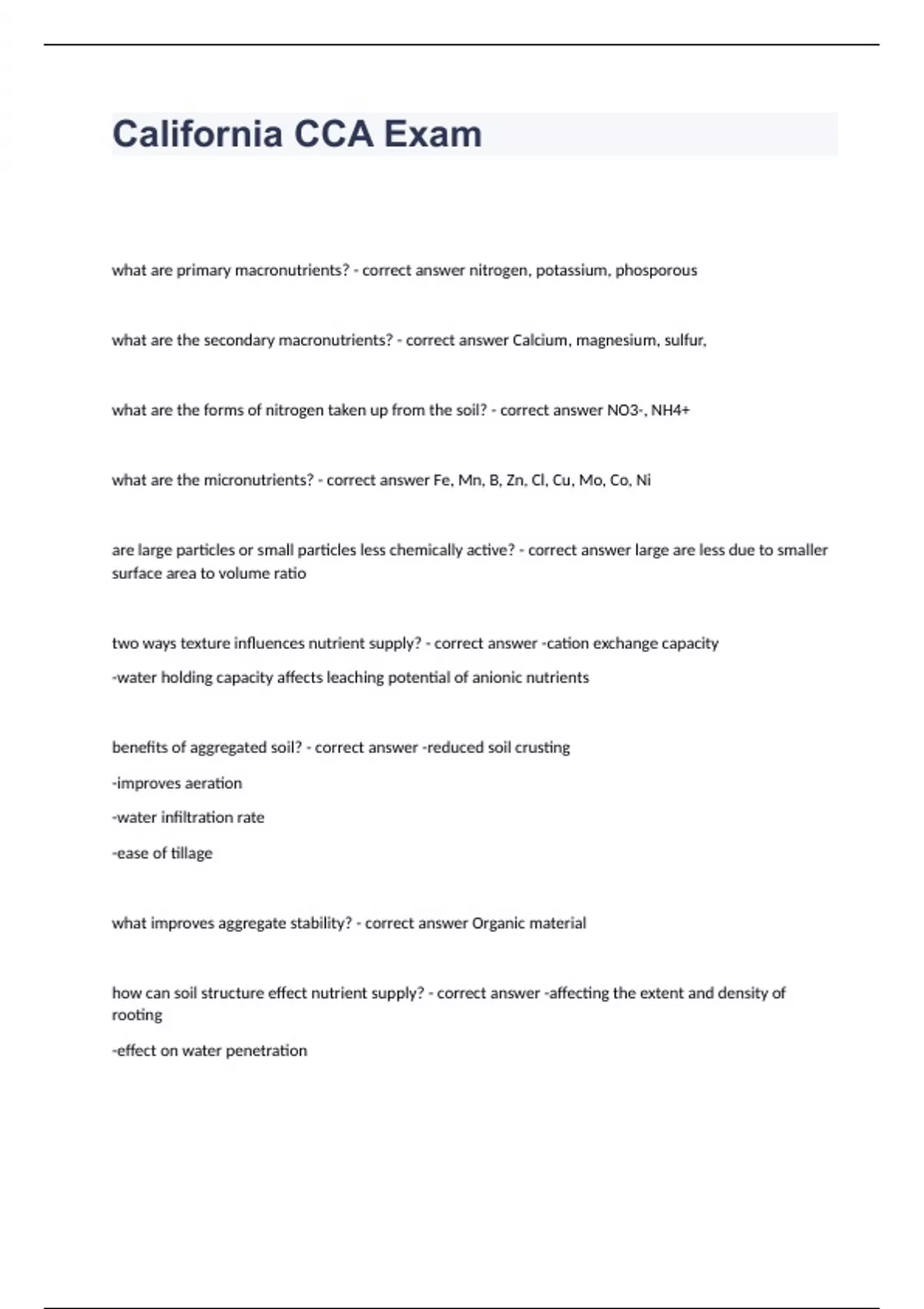 Exam of 10 pages for the course CCA at CCA (California CCA Exam)