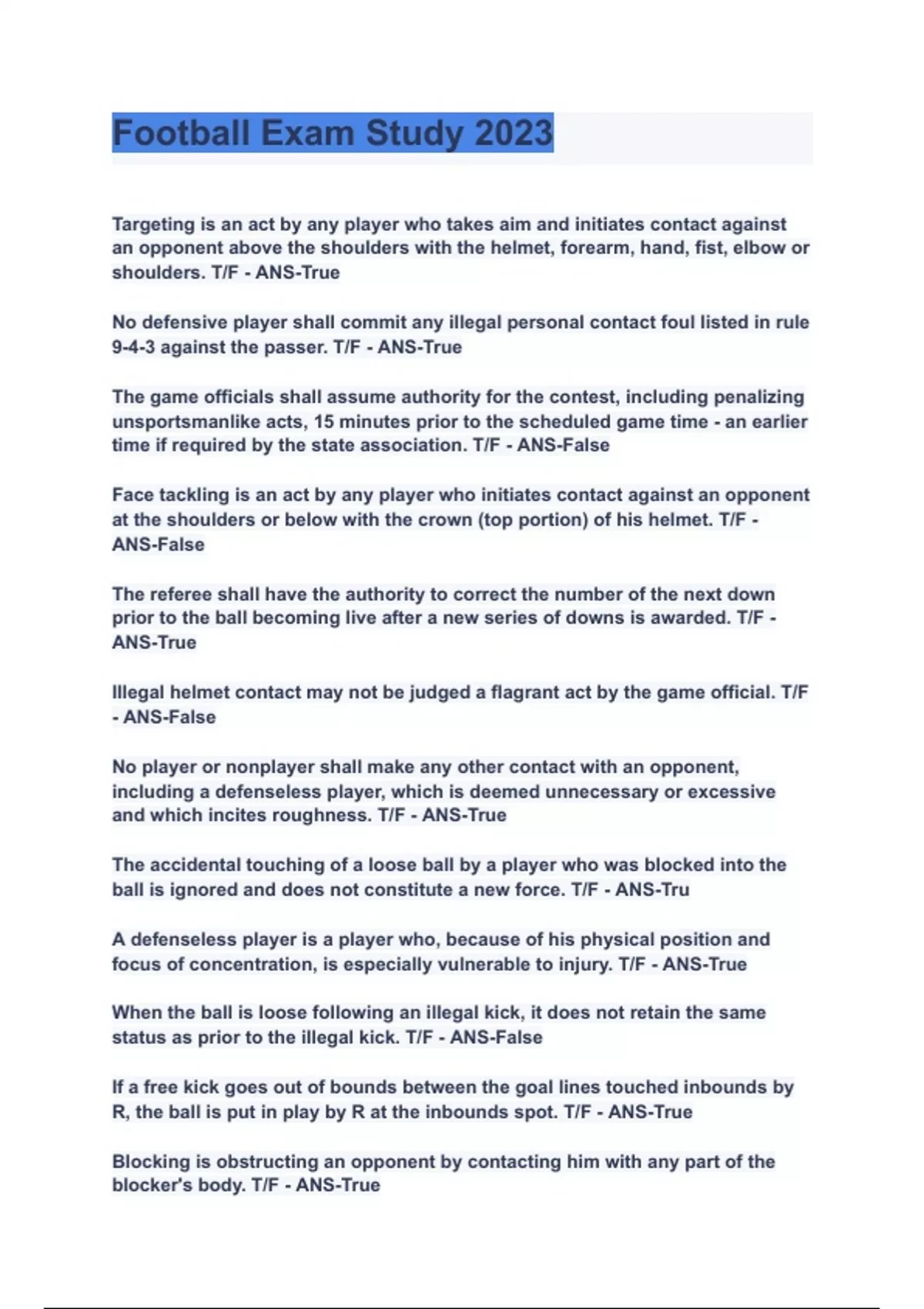 Football Exam Study 2023(LATEST CORRECT ANSWERS)
