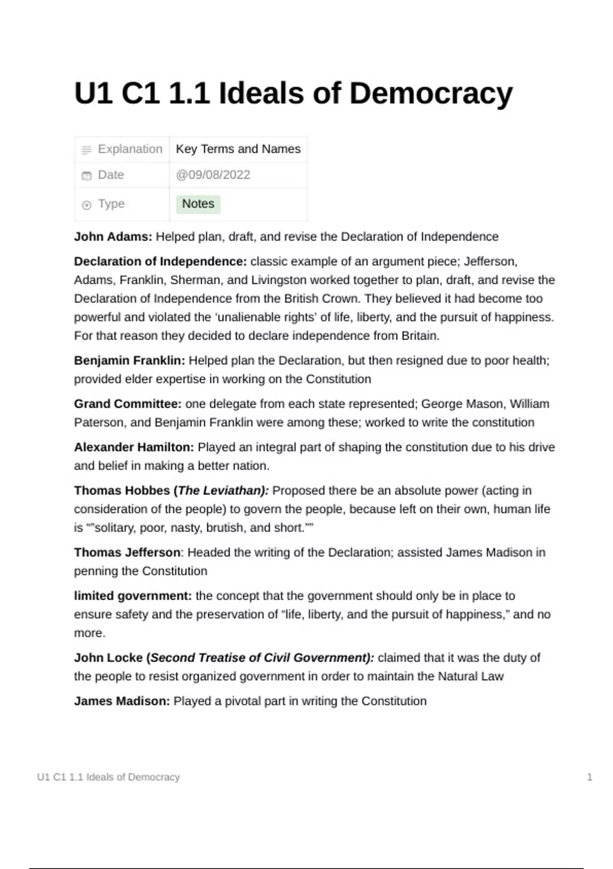 Unit 1 Chapter 1.1 Ideals of Democracy