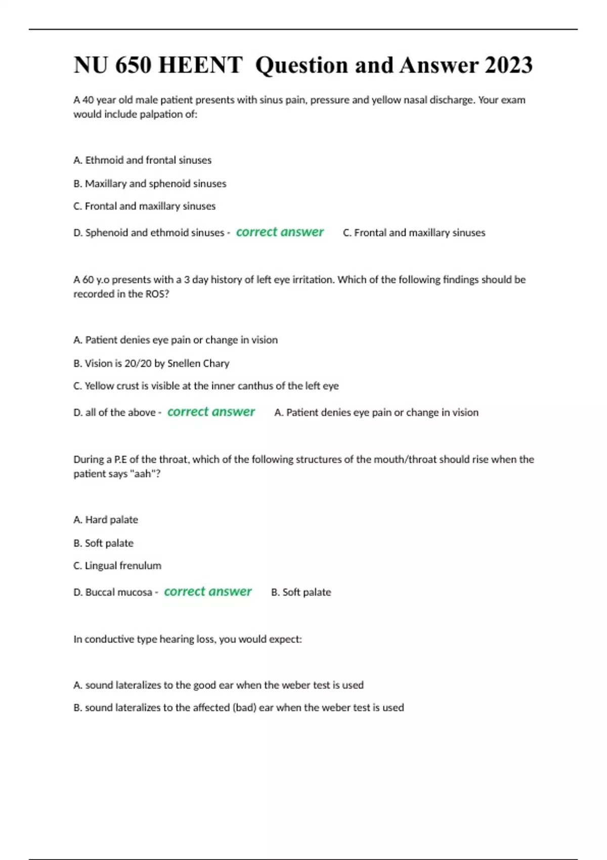 NU 650 HEENT Question and Answer 2023