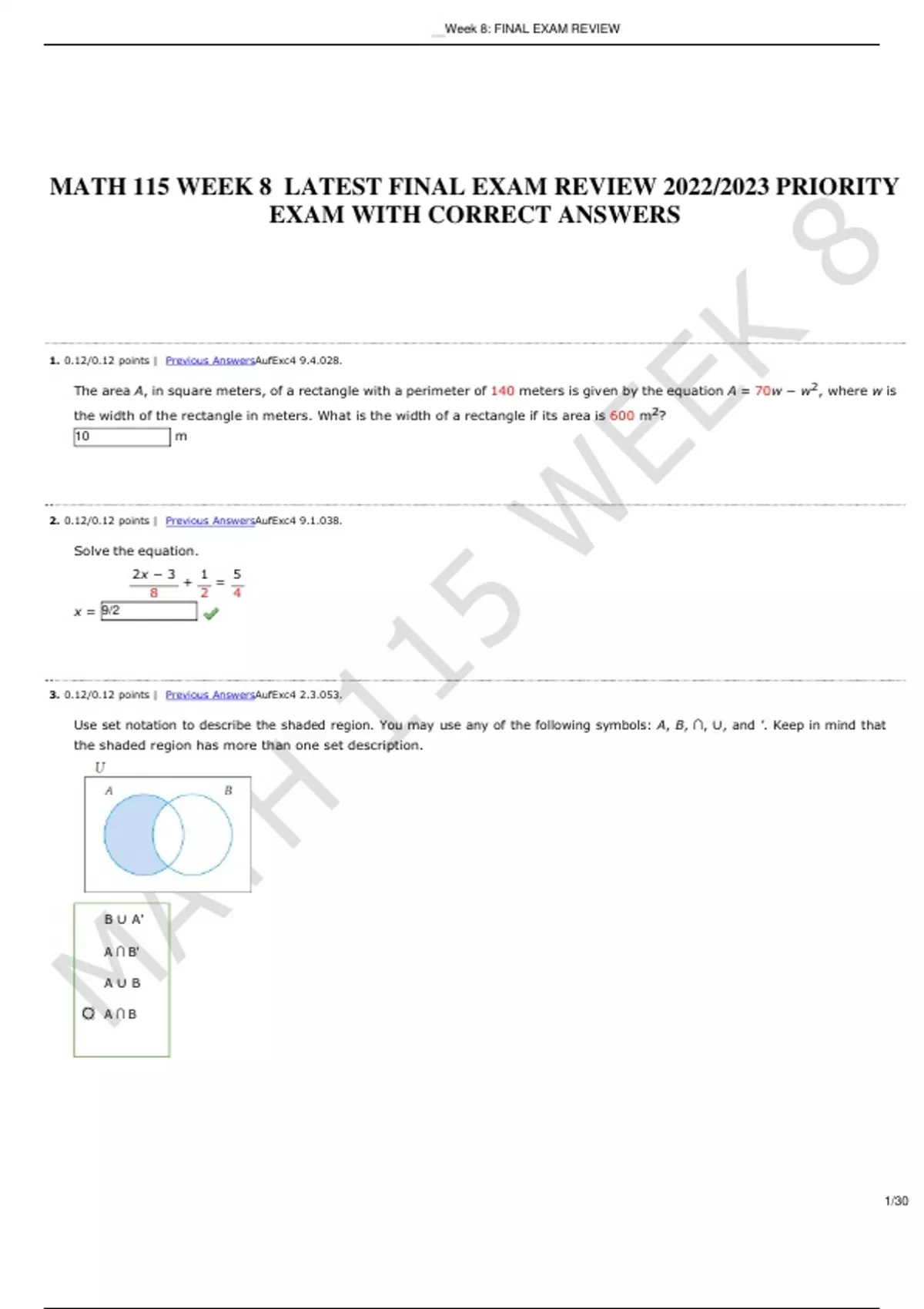 math 115 week 8 latest final exam review 20222023