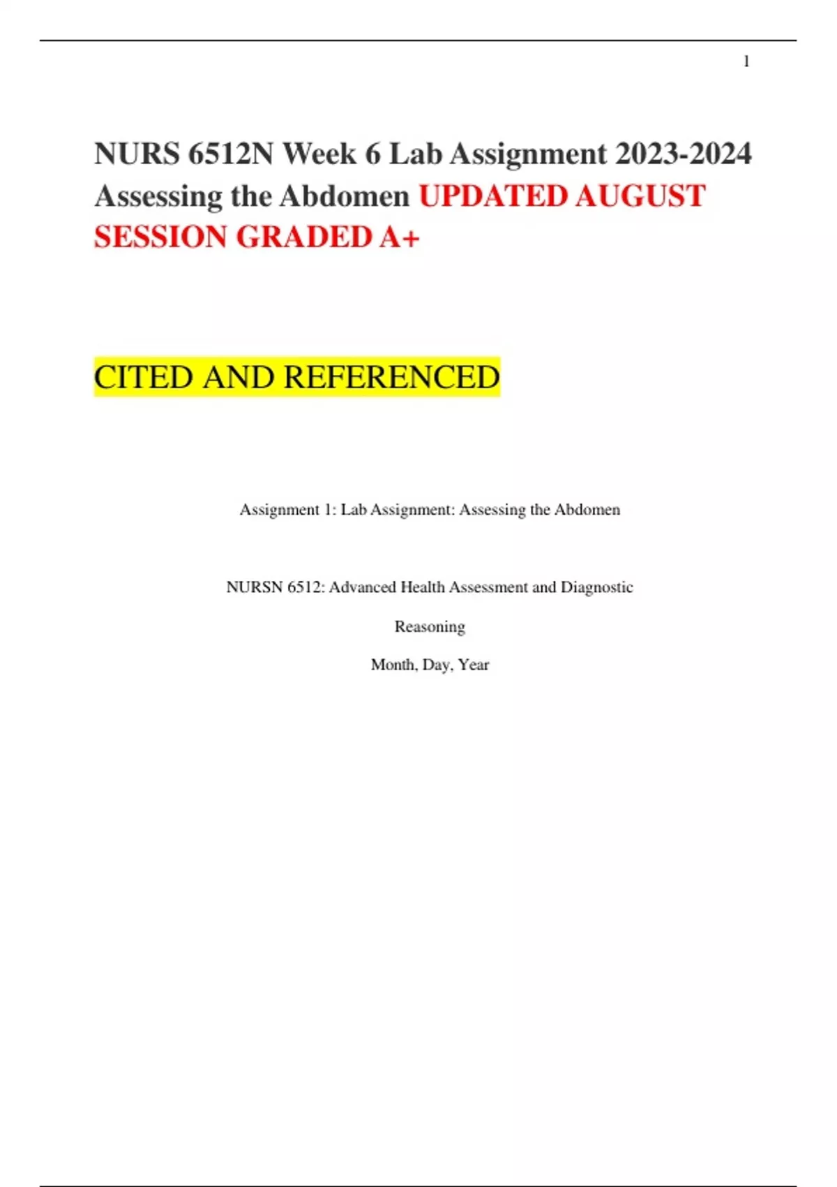 NURS 6512N Week 6 Lab Assignment Assessing the Abdomen UPDATED AUGUST SESSION GRADED A+
