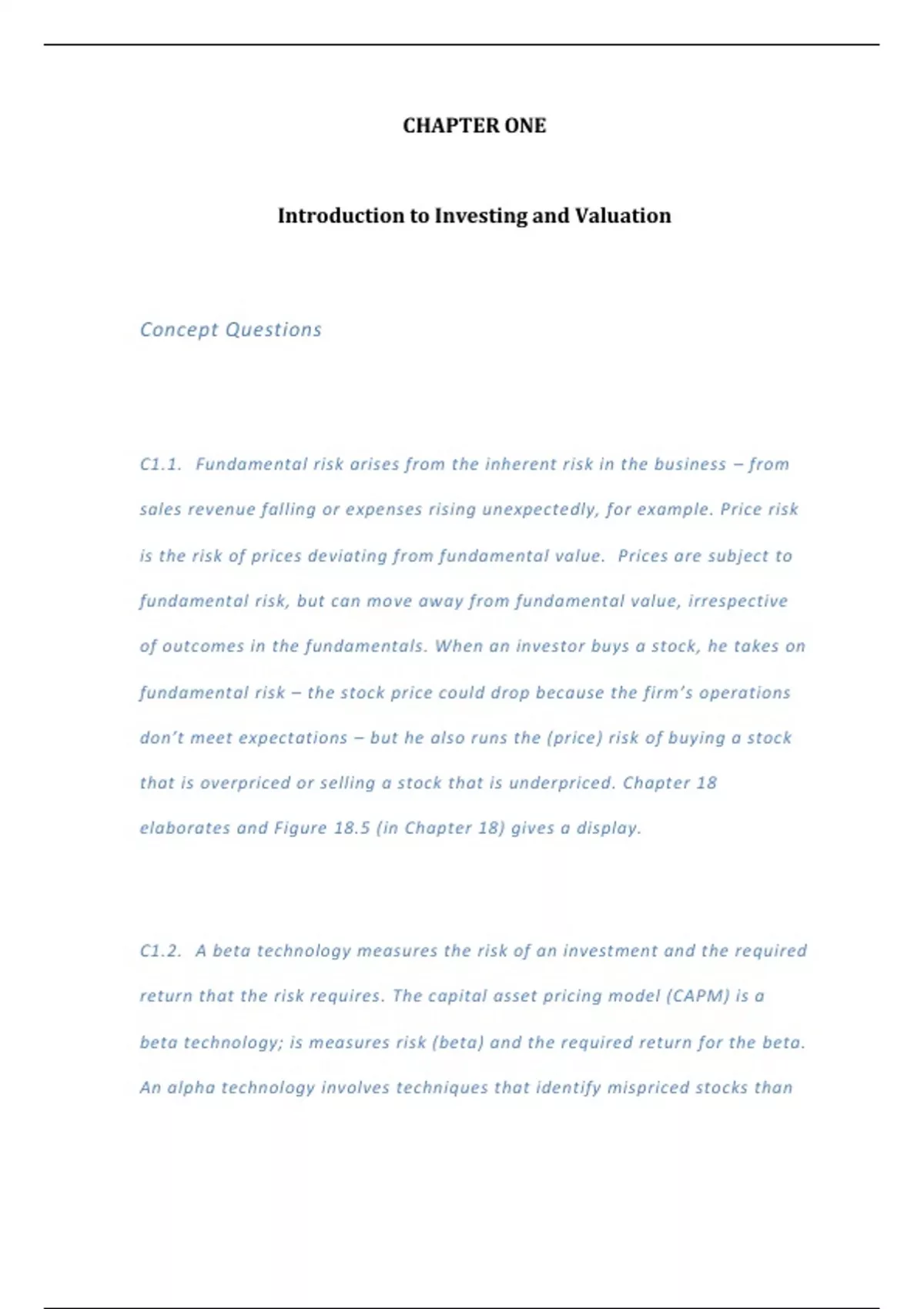 C1.2. A beta technology measures the risk of an investment and the required