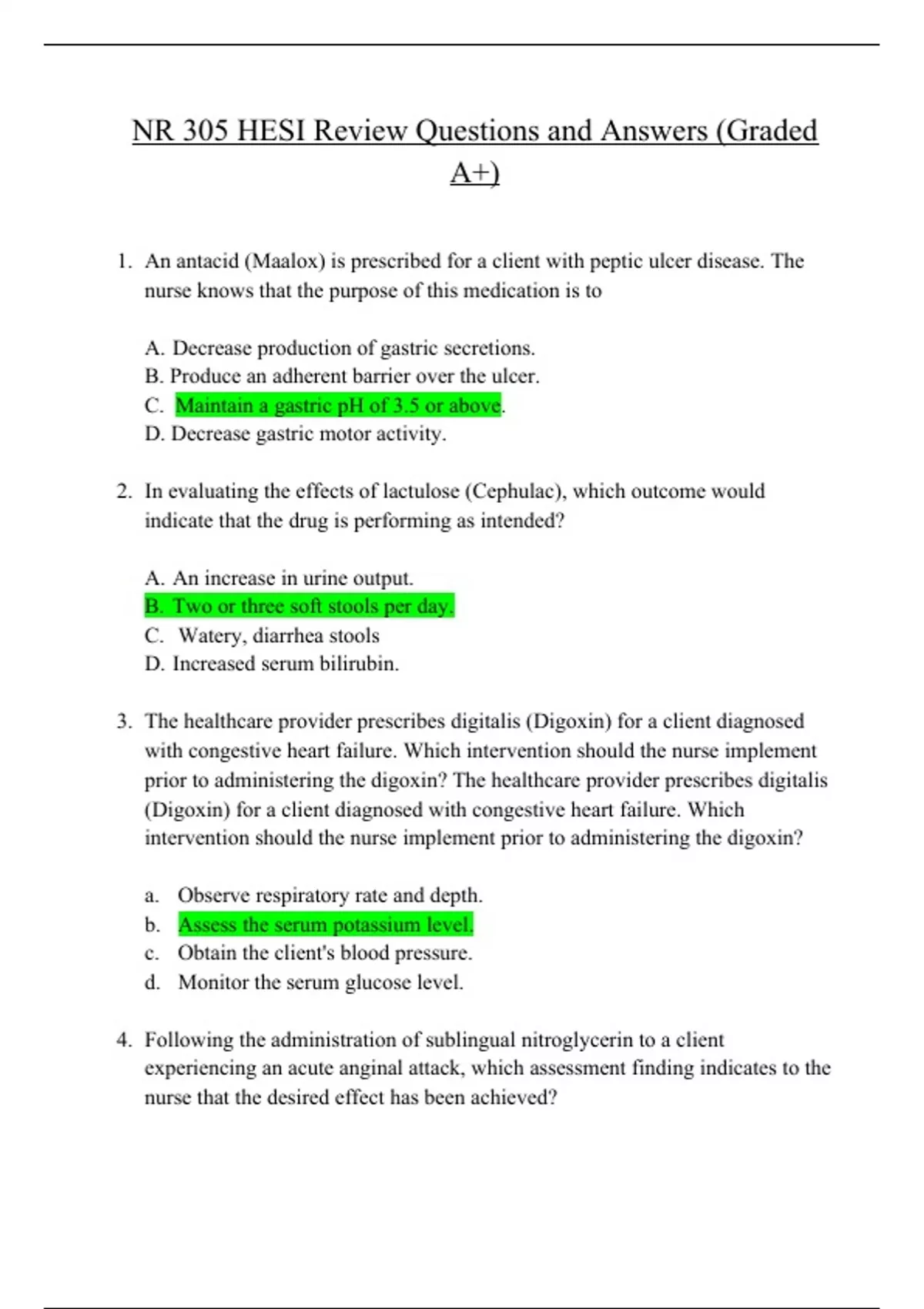 NR 305 HESI Review Questions and Answers (Graded A+)