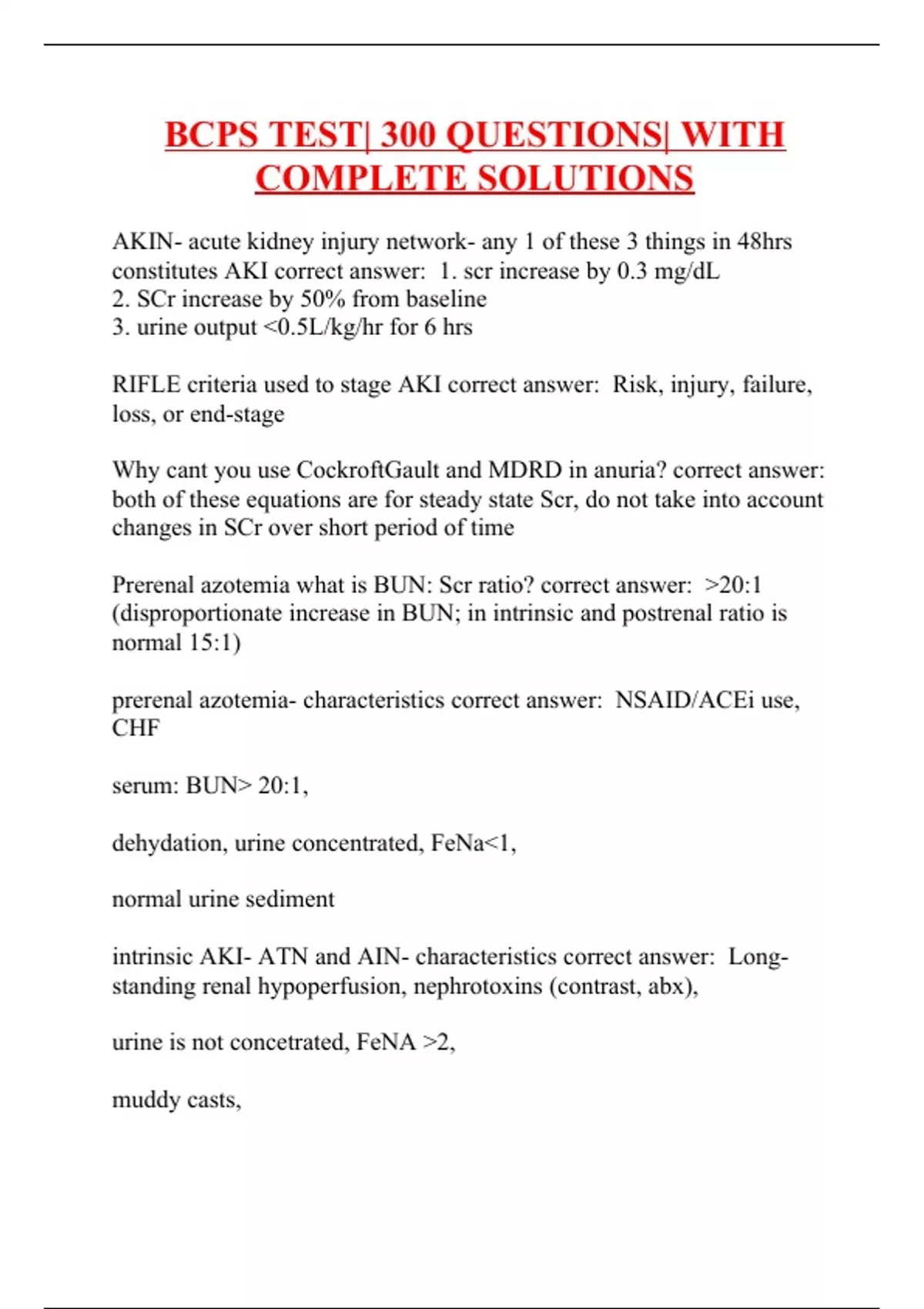 BCPS TEST| 300 QUESTIONS| WITH COMPLETE SOLUTIONS
