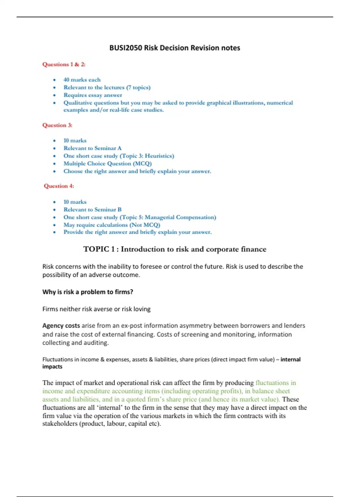 BUSI2050 Risk Decision Revision notes