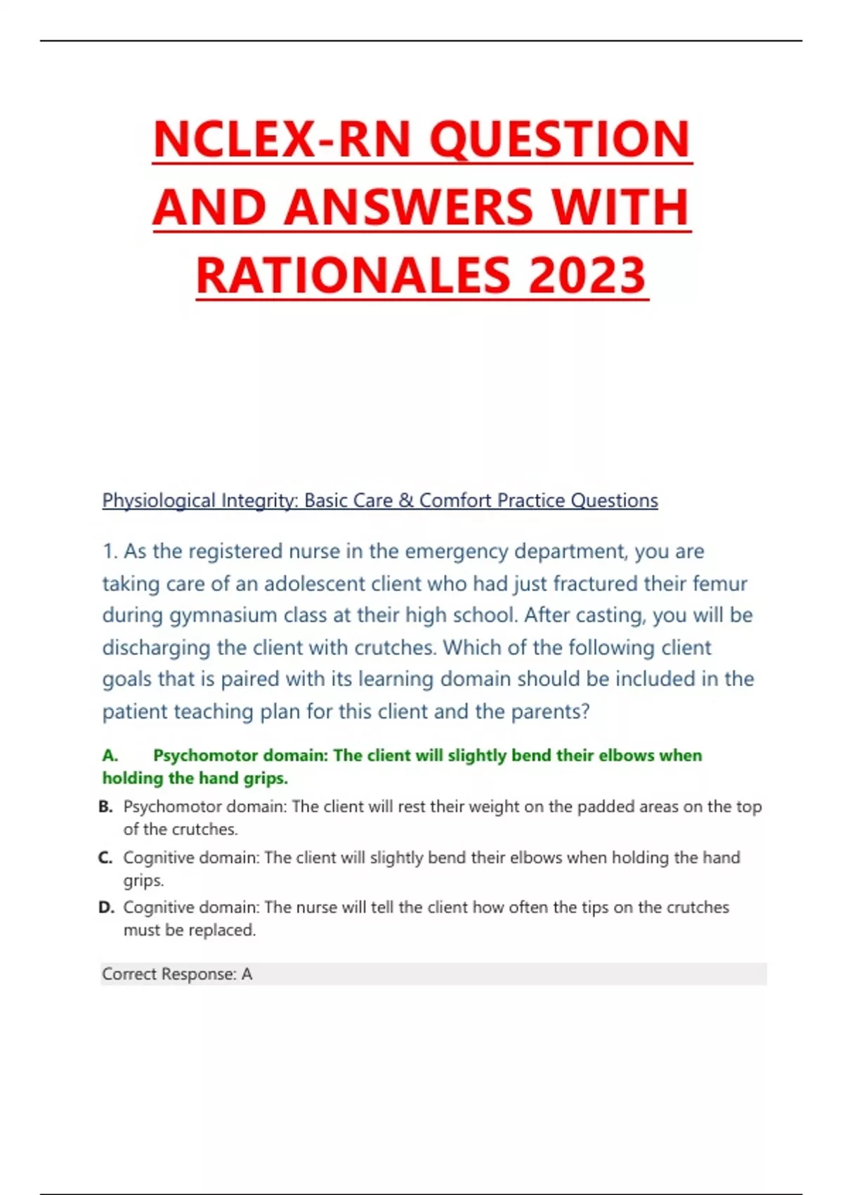 NCLEX-RN QUESTION AND ANSWERS WITH RATIONALES 2023 Physiological Integrity: Basic Care & Comfort Practice Questions