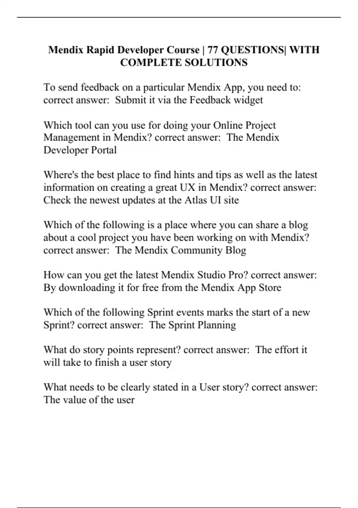 Mendix Rapid Developer Course | 77 QUESTIONS| WITH COMPLETE SOLUTIONS