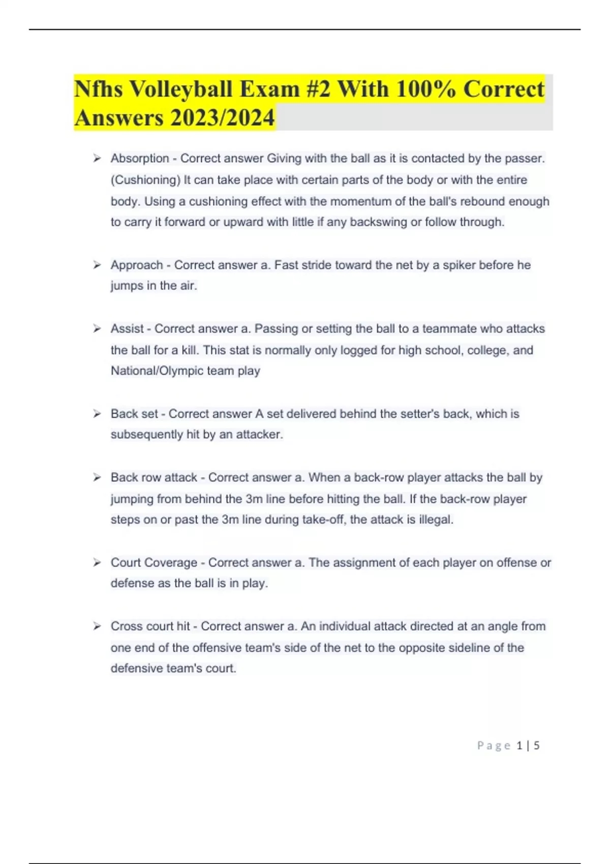 Nfhs Volleyball Exam #2 With 100% Correct Answers 2023/2024Nfhs Volleyball Exam #2 With 100% Correct Answers 2023/2024