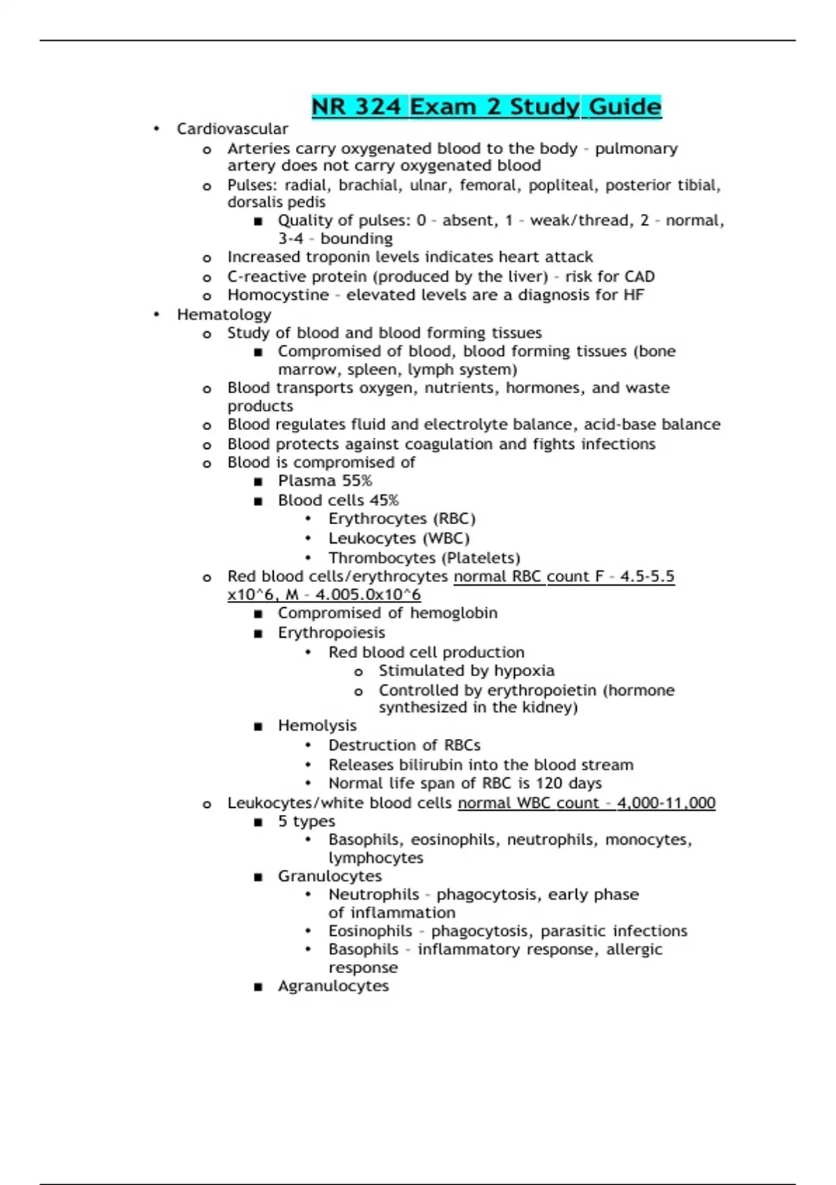 NR 324 Exam 2 Study Guide