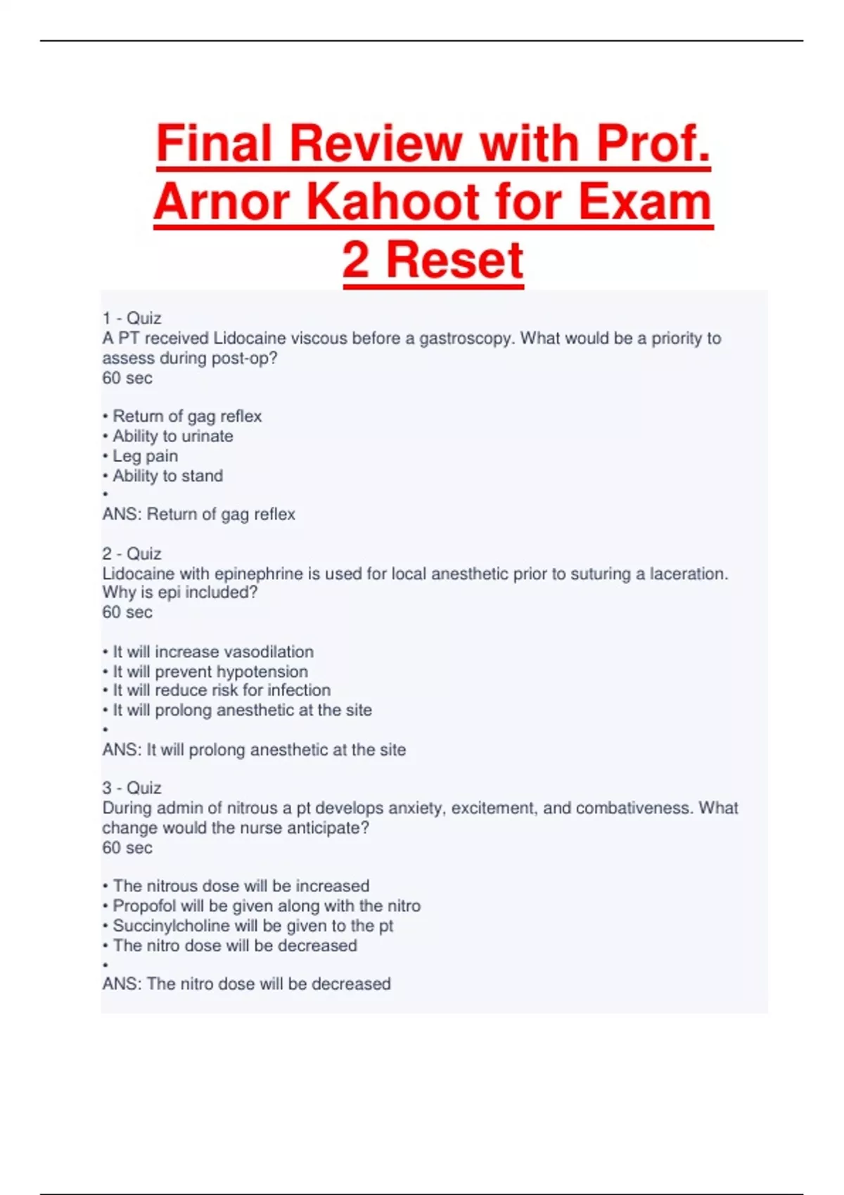Final Review with Prof. Arnor Kahoot for Exam 2 Reset
