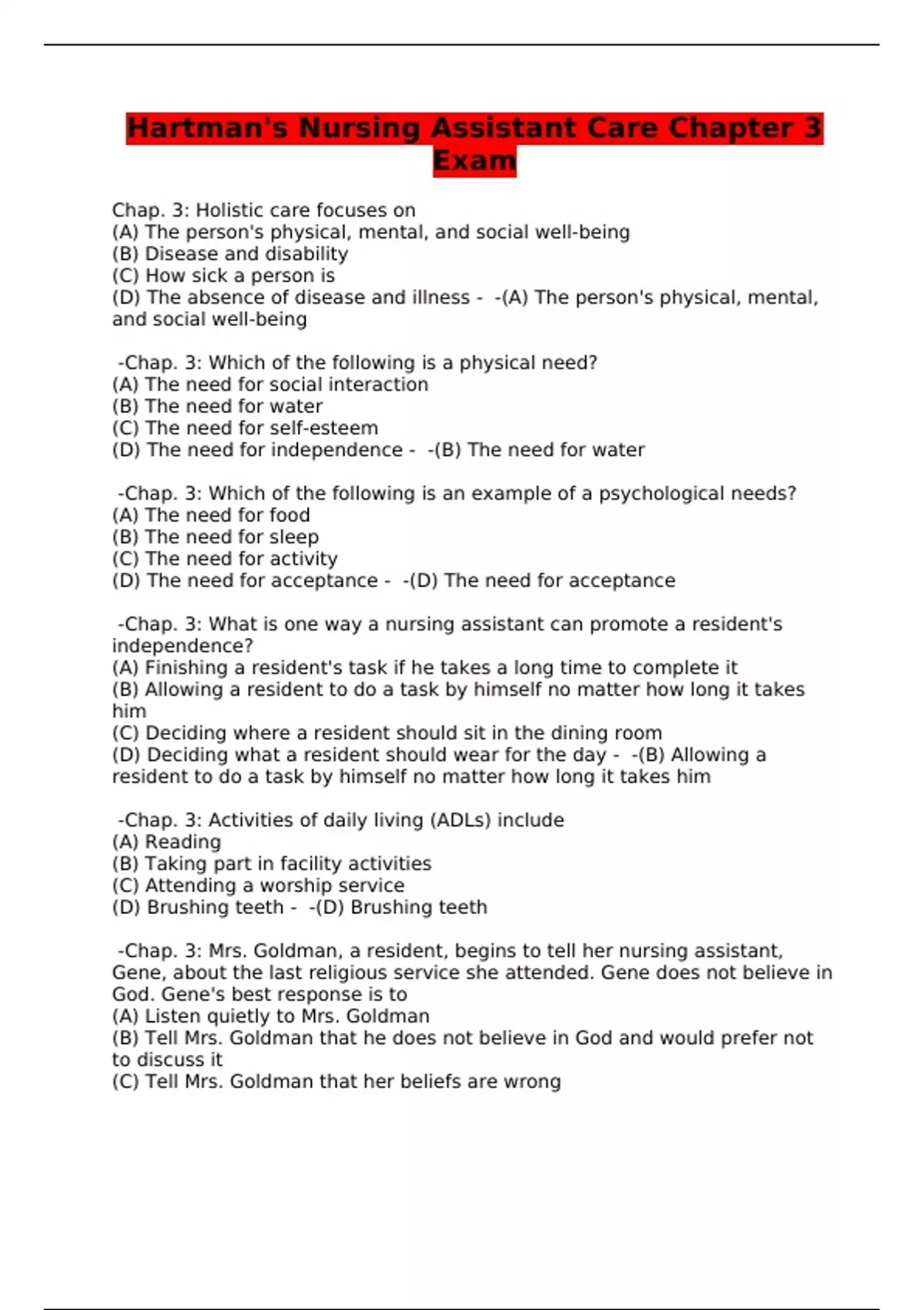 - Hartman\'s Nursing Assistant Care Chapter 3