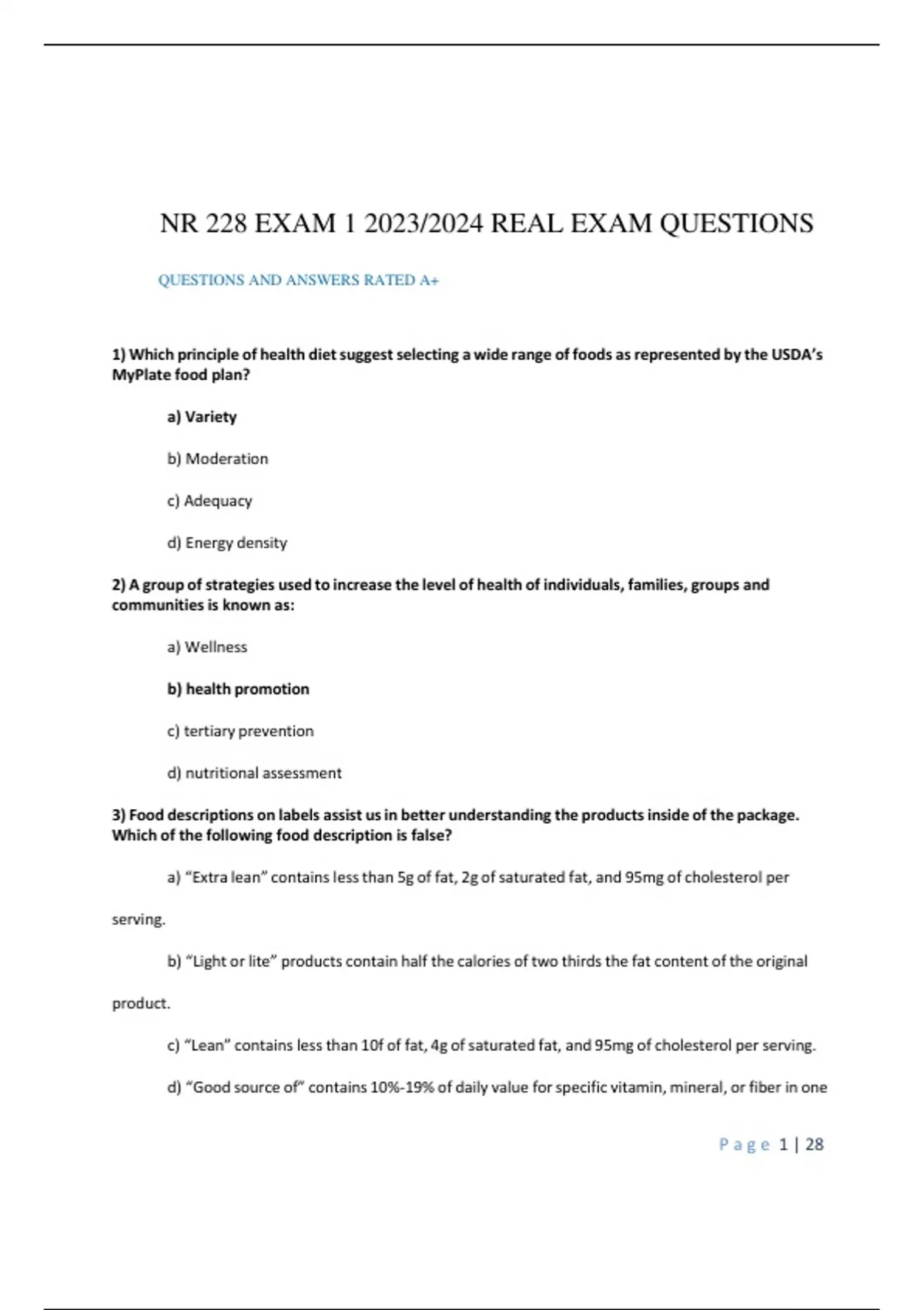 NR 228 Exam 1 2023/2024 rated A+ NR 228 Exam 1 2023/2024 rated A+ NR 228 Exam 1 2023/2024 rated A+