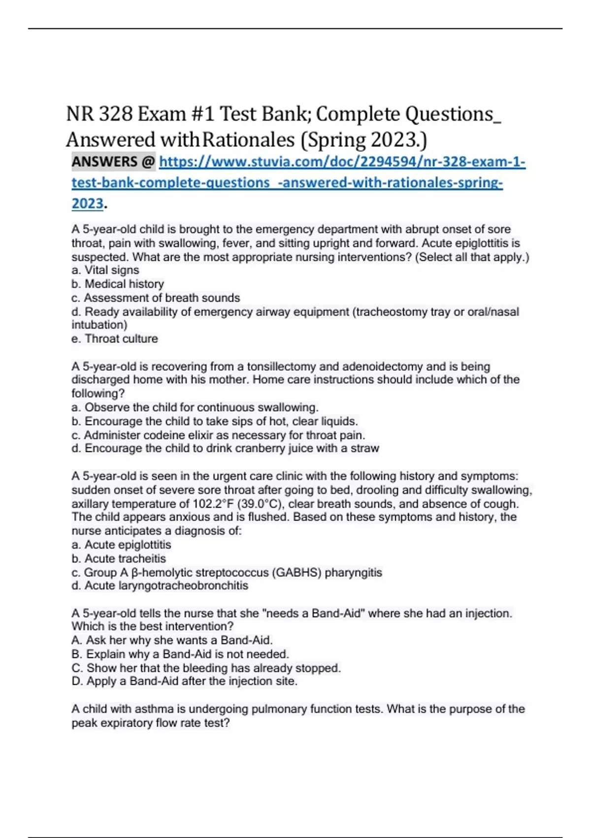 NR 328 Exam #1 Test Bank; Complete Questions_ Answered with Rationales (Spring 2023.)