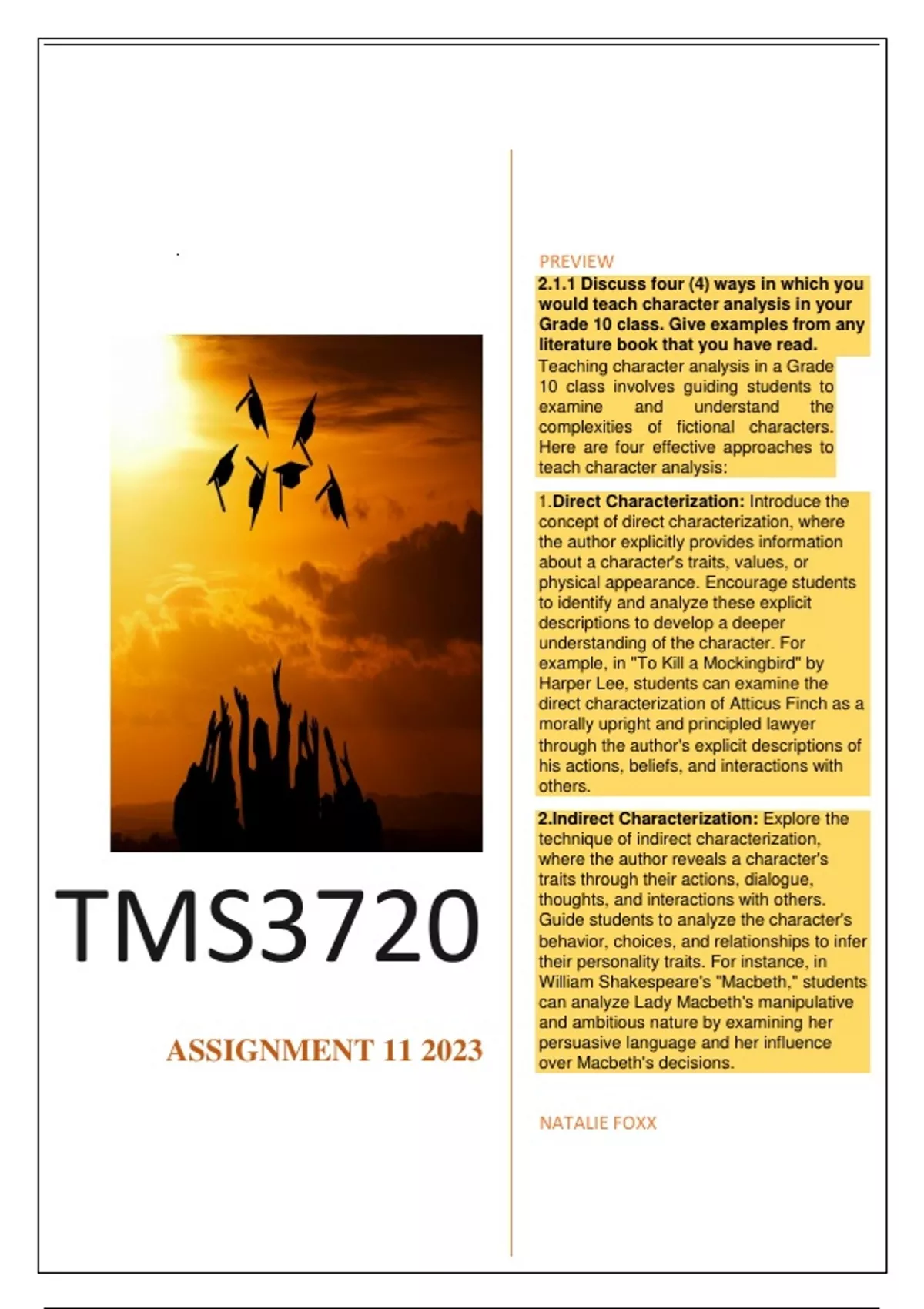 TMS3720 ASSIGNMENT 11 (COMPLETE ANSWERS) 2023