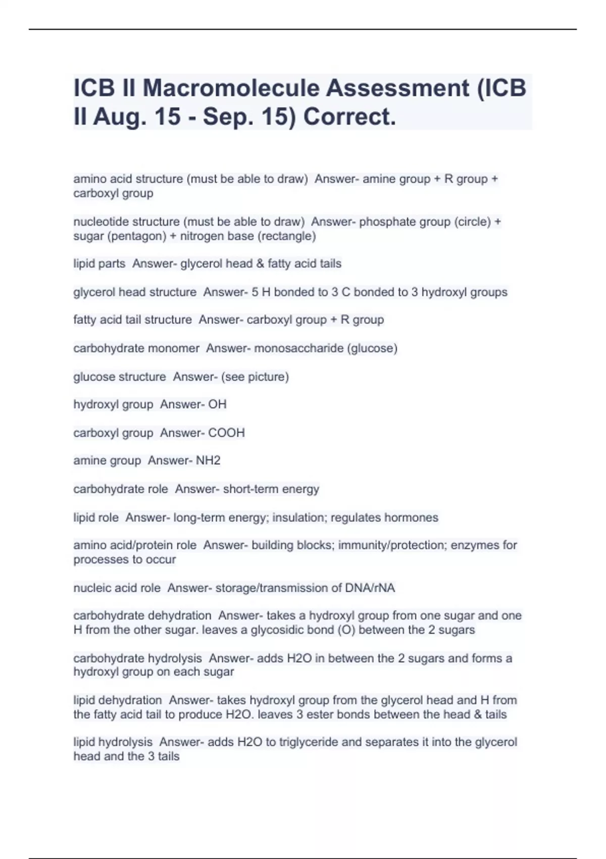 ICB II Macromolecule Assessment (ICB II Aug. 15 - Sep. 15) Correct.