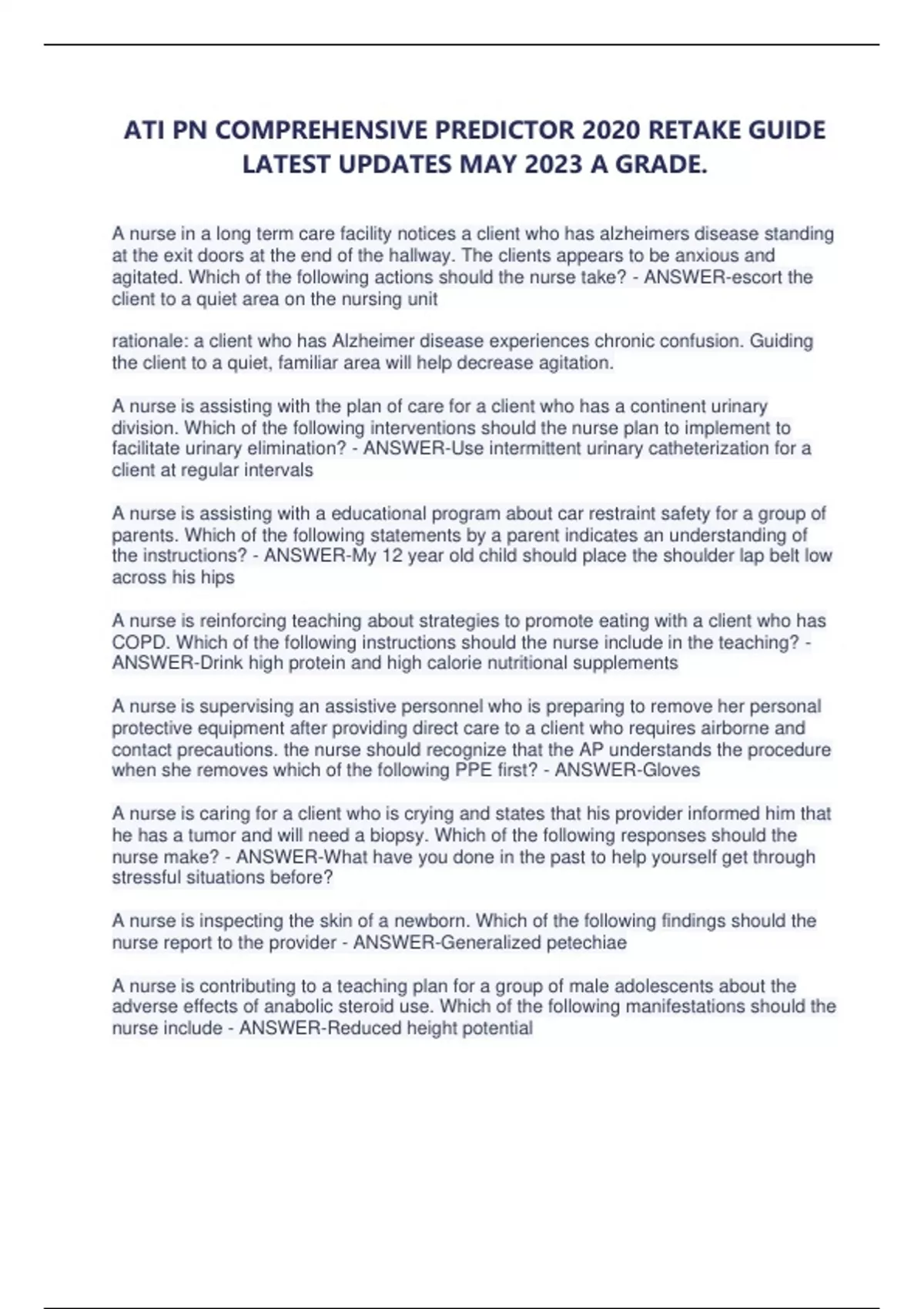 ATI PN COMPREHENSIVE PREDICTOR 2020 RETAKE GUIDE LATEST UPDATES MAY 2023 A GRADE.