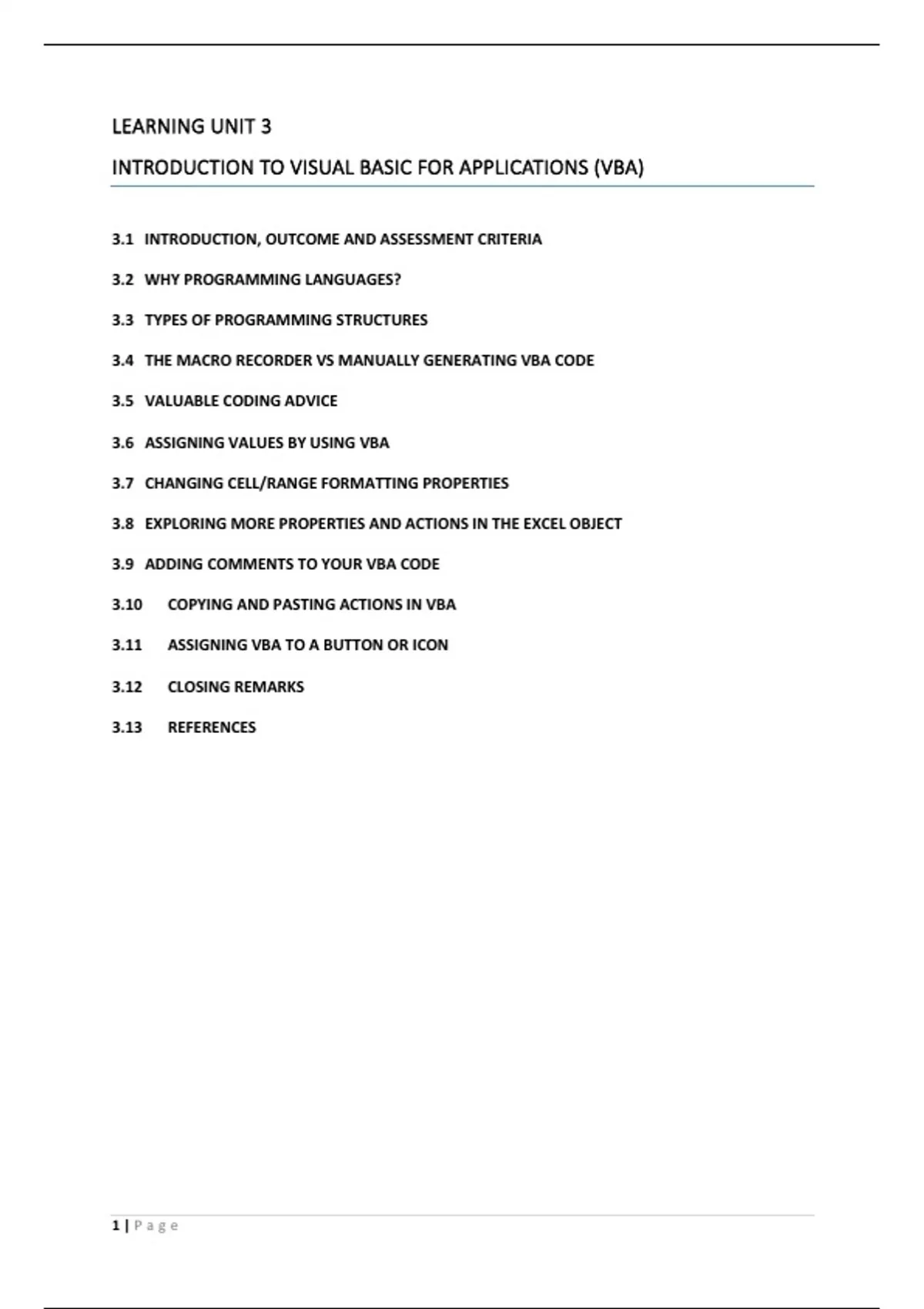 LEARNING UNIT 3 INTRODUCTION TO VISUAL BASIC FOR APPLICATIONS (VBA)