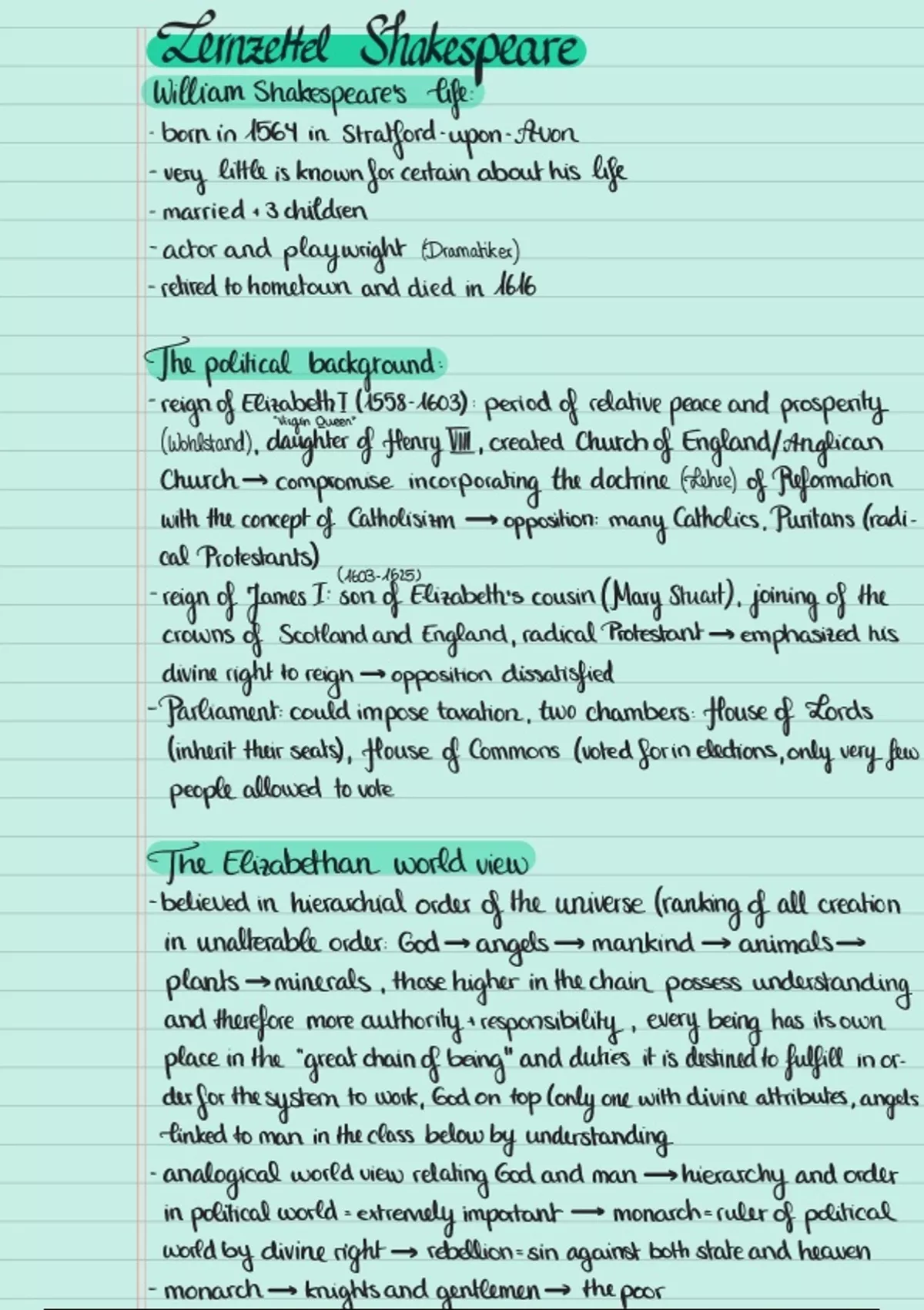 Summary Lernzettel Shakespeare Abitur