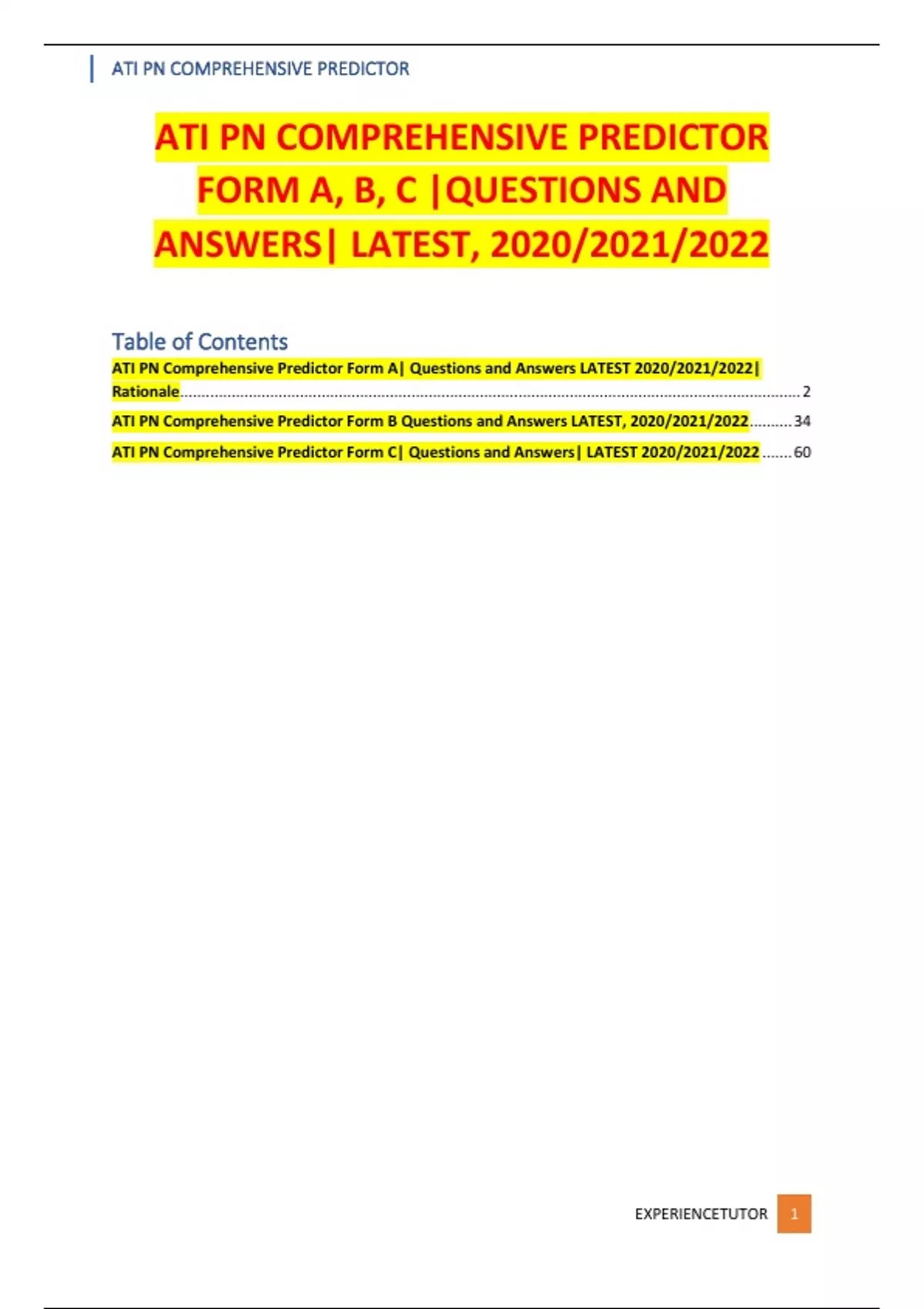 ATI PN COMPREHENSIVE PREDICTOR FORM A ,B,C |QUESTIONS AND ANSWERS| LATEST, 2020/2021/2022,ATI PN COMPREHENSIVE PREDICTOR FORM A ,B,C |QUESTIONS AND ANSWERS| LATEST, 2020/2021/2022