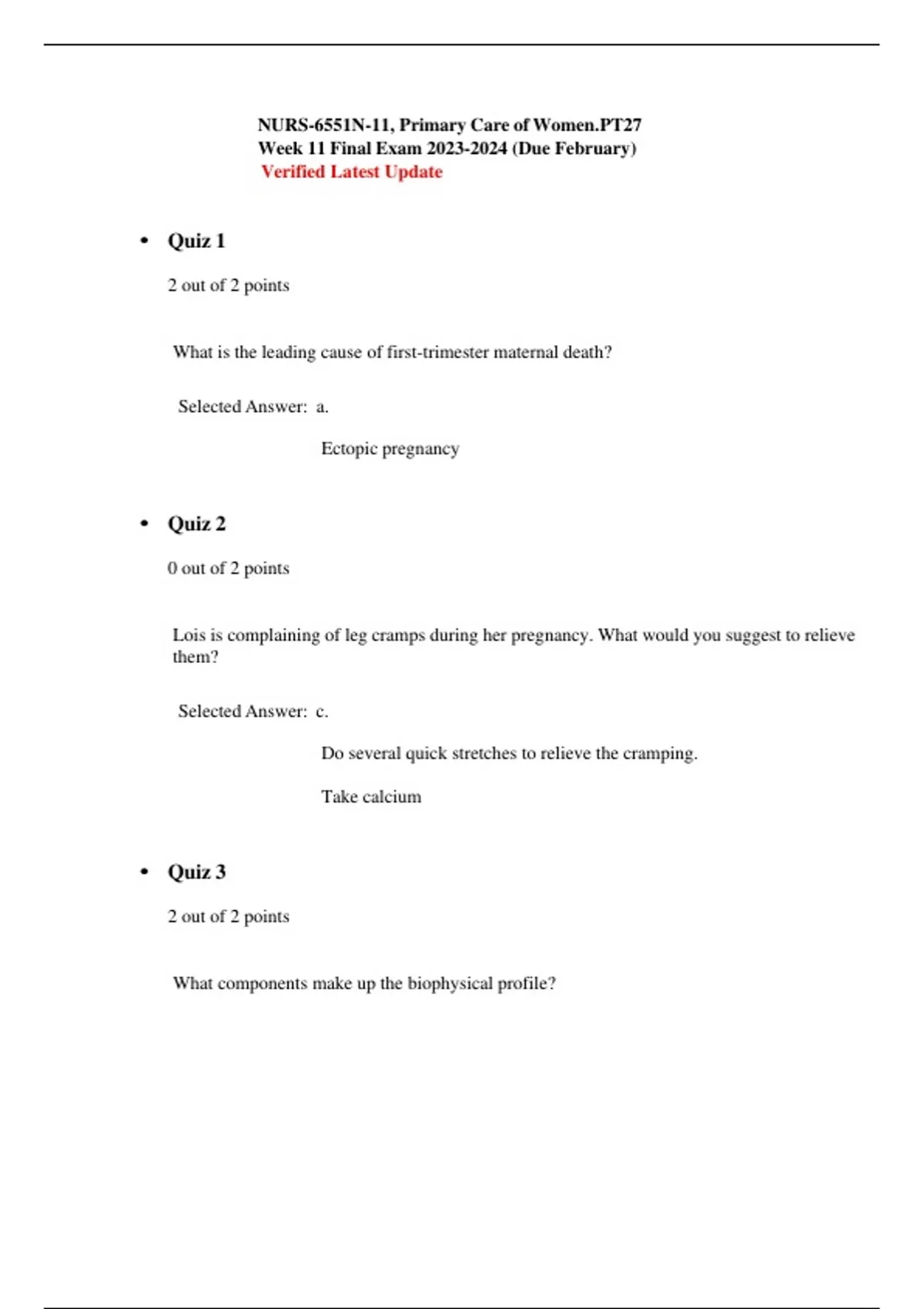 NURS-6551N-11, Primary Care of Women. PT27 Week 11 Final Exam (Due February) Verified Latest Update