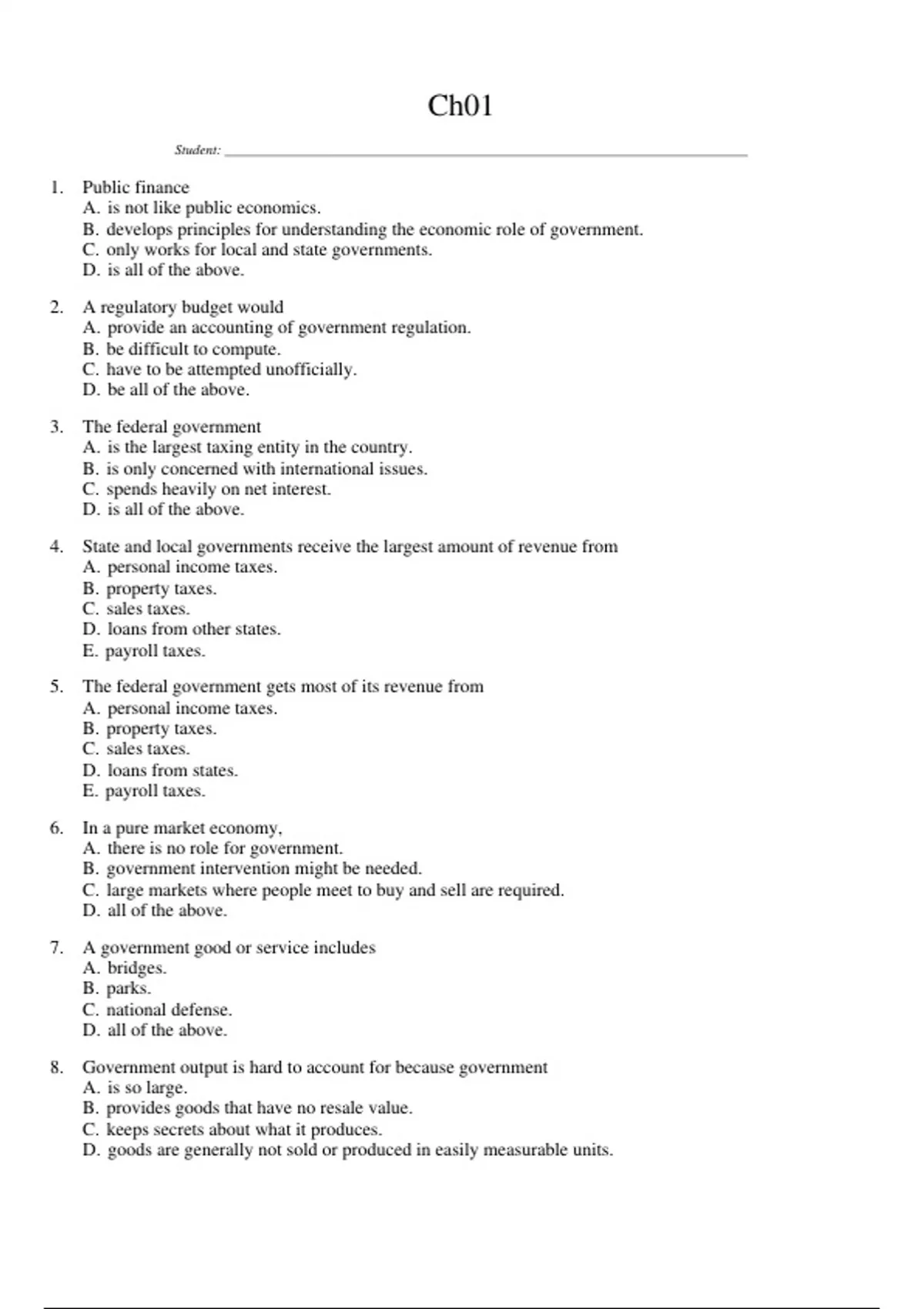 22. The taxes paid by citizens are directly related to the benefit of government goods and services