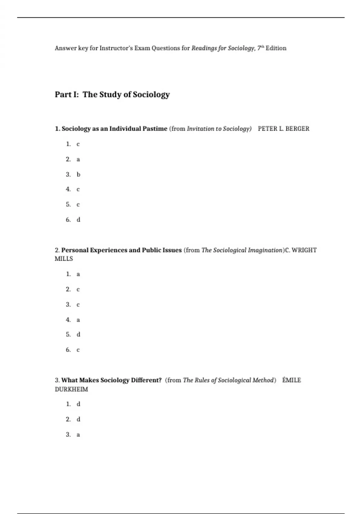 1. Sociology as an Individual Pastime (from Invitation to Sociology) PETER L. BERGER