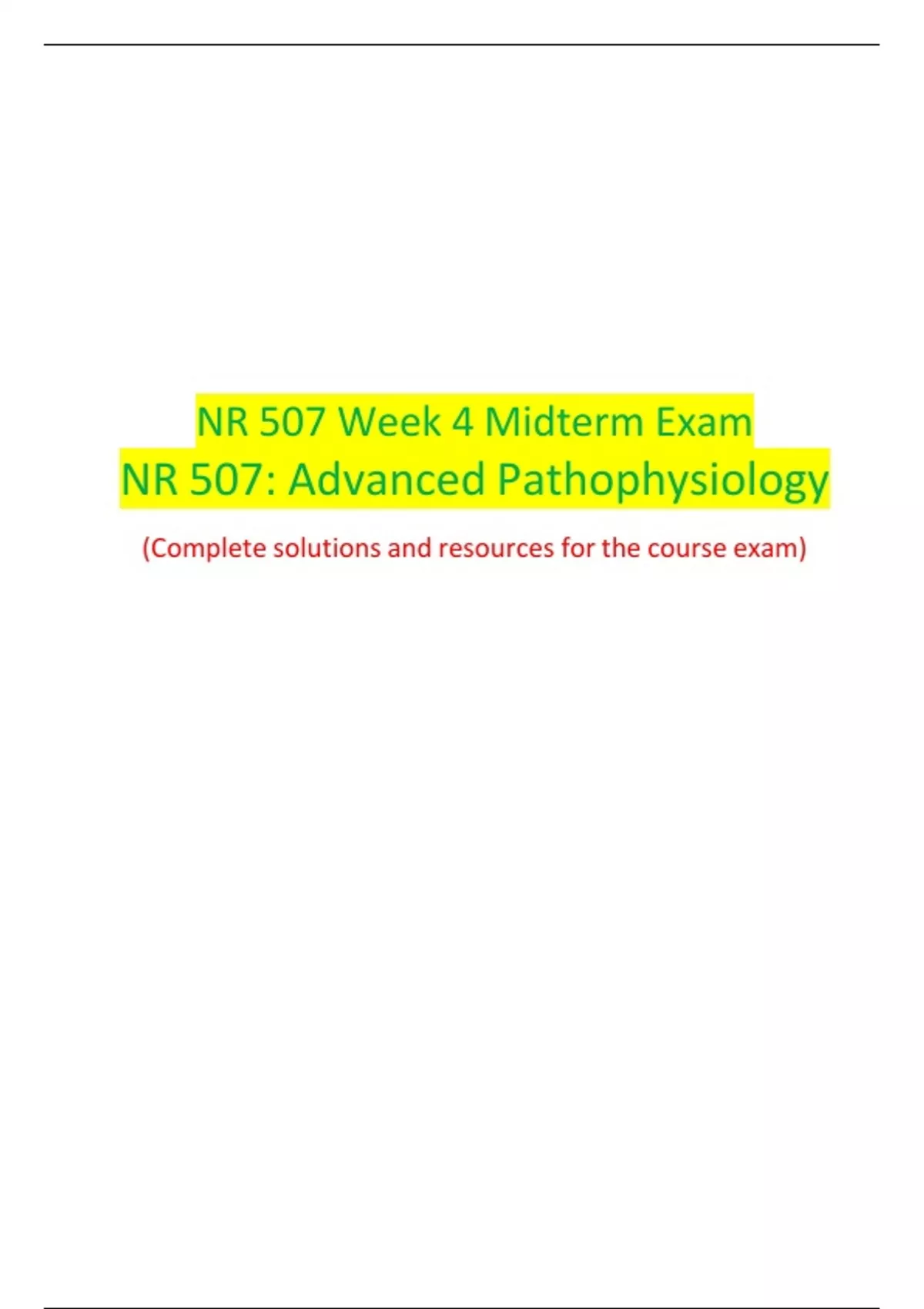 NR 507 / NR 507: Advanced Pathophysiology Midterm Exam Week 4 (2023/2024)