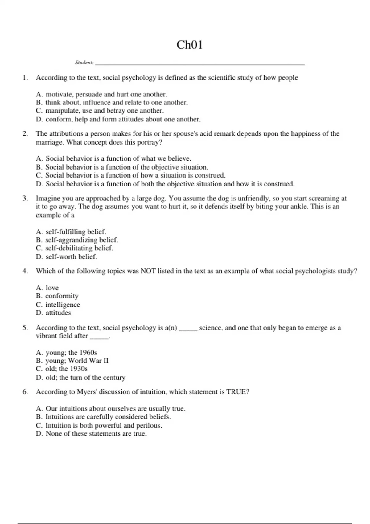 5. According to the text, social psychology is a(n) _____ science, and one that only began to emerge as a