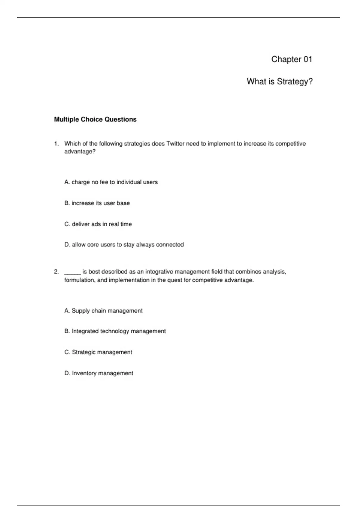 1. Which of the following strategies does Twitter need to implement to increase its competitive