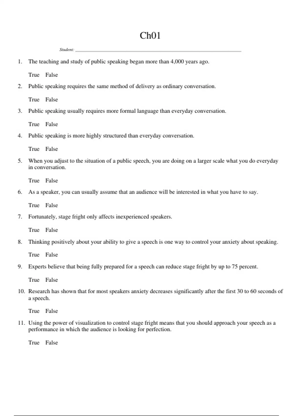 Make the Test Bank for [The Art Of Public Speaking,Lucas,9e] your companion for exam preparation. Utilize it to practice exam questions and get official exams and answers. Here's to achieving exam success in !