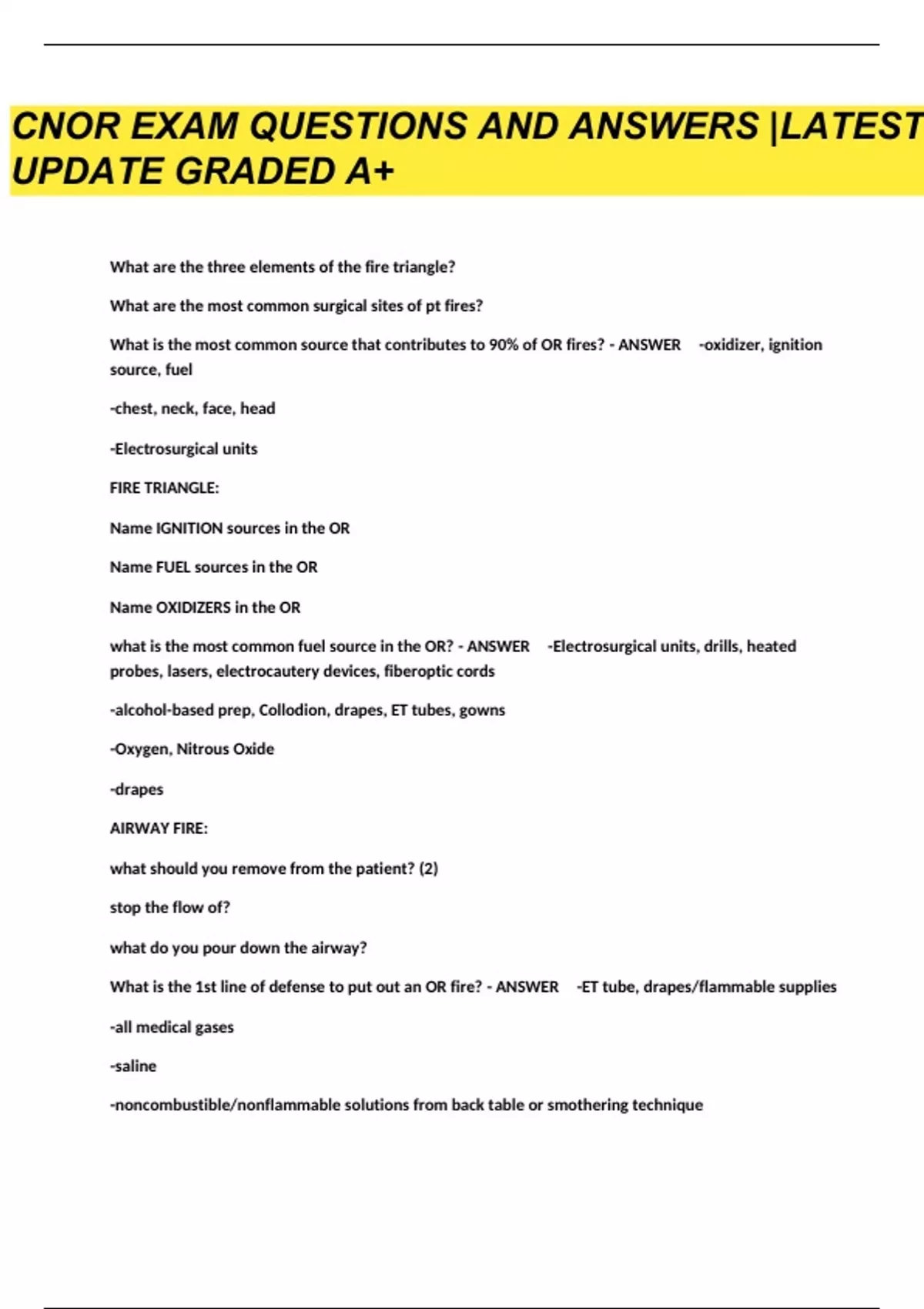 CNOR EXAM QUESTIONS AND ANSWERS |LATEST UPDATE GRADED A+