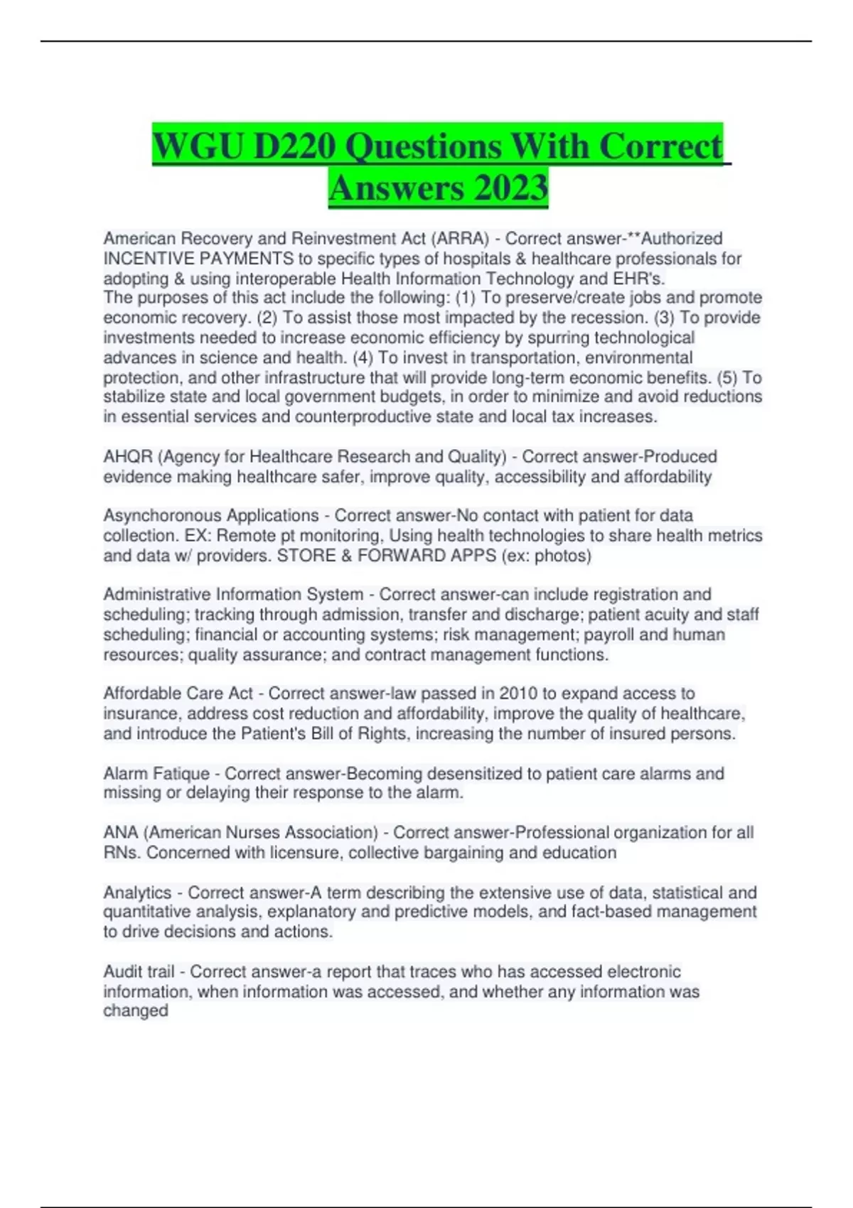 WGU D220 Questions With Correct Answers 2023