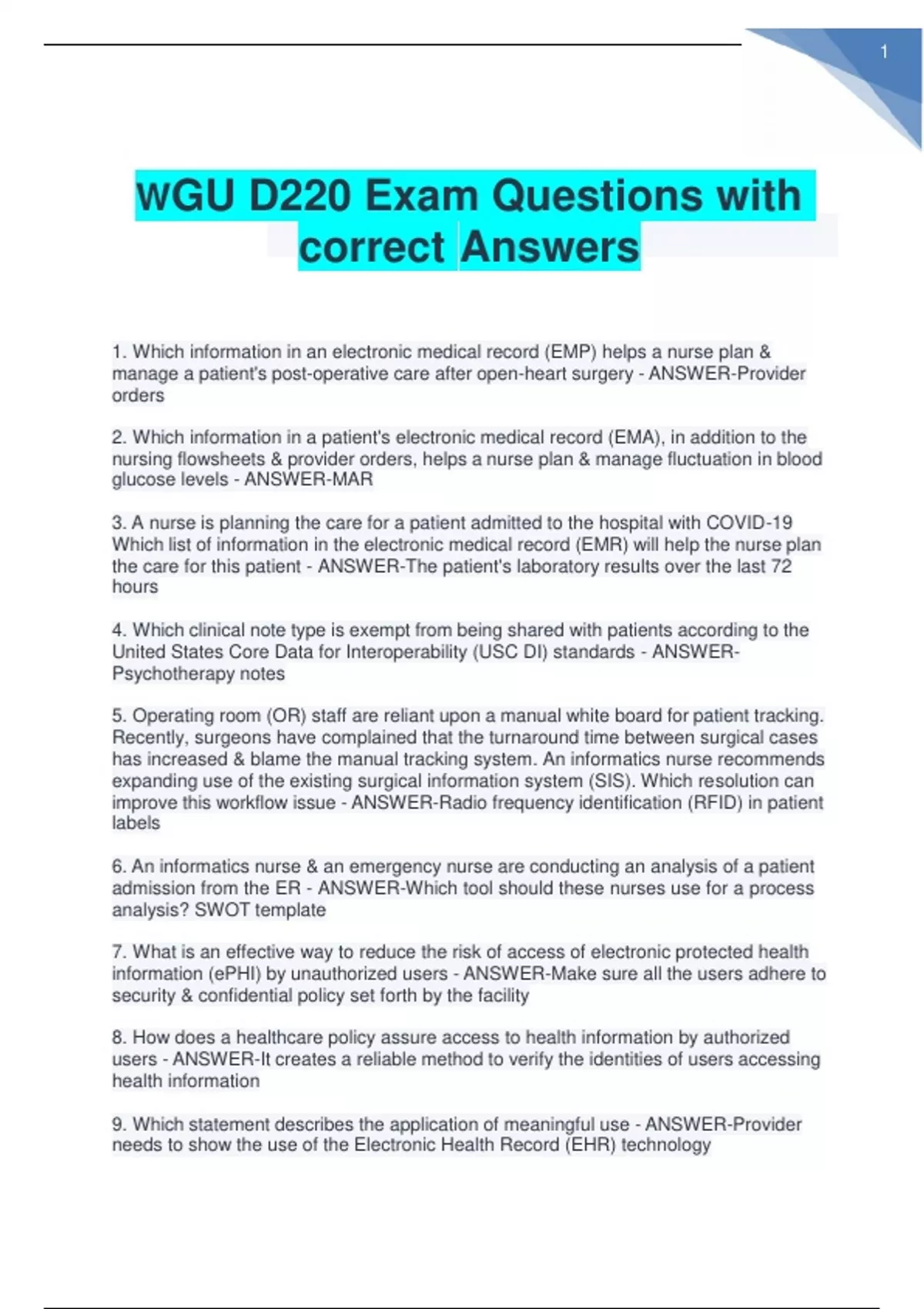 WGU D220 QUESTIONS WITH CORRECT ANSWERS ALL 328 Q&A LATEST UPDATES 2023 A+ GRADE