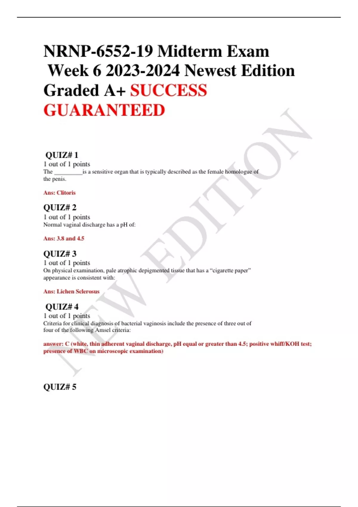 NRNP-6552-19 Midterm Exam Week Newest Edition Graded A+ SUCCESS GUARANTEED