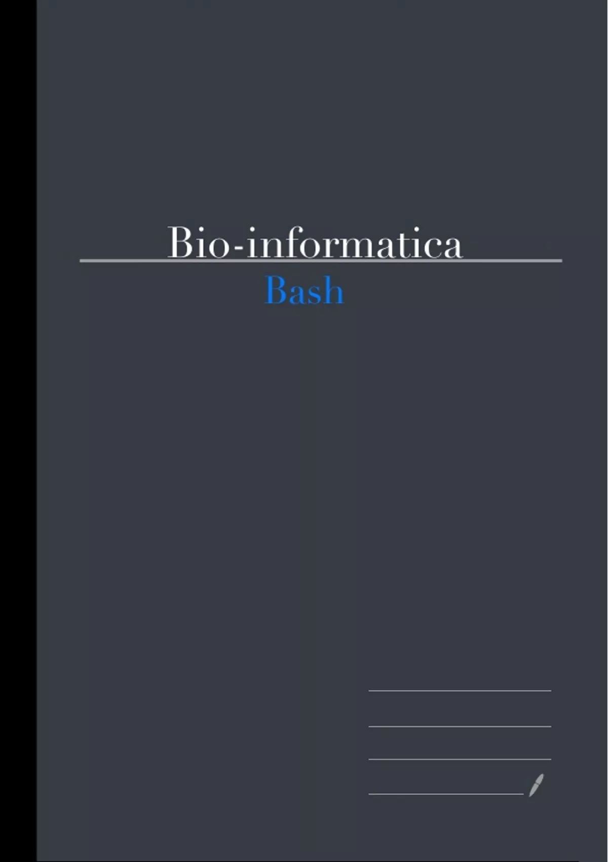 Bio-informatica samenvatting/ college aantrekkingen. In dit document staan alle oefeningen die in de les zijn gemaakt duidelijk uitgeschreven. Dit is ook een goed document om bij je examen te gebruiken aangezien hier alle oefeningen in staan en op het examen worden gelijke oefeningen gevraagd. Let op in dit document staan enkel de lessen van Stein Aerts en dus Bash. Zelf dit document geschreven en gestudeerd en door met 16/20 eerste zit.