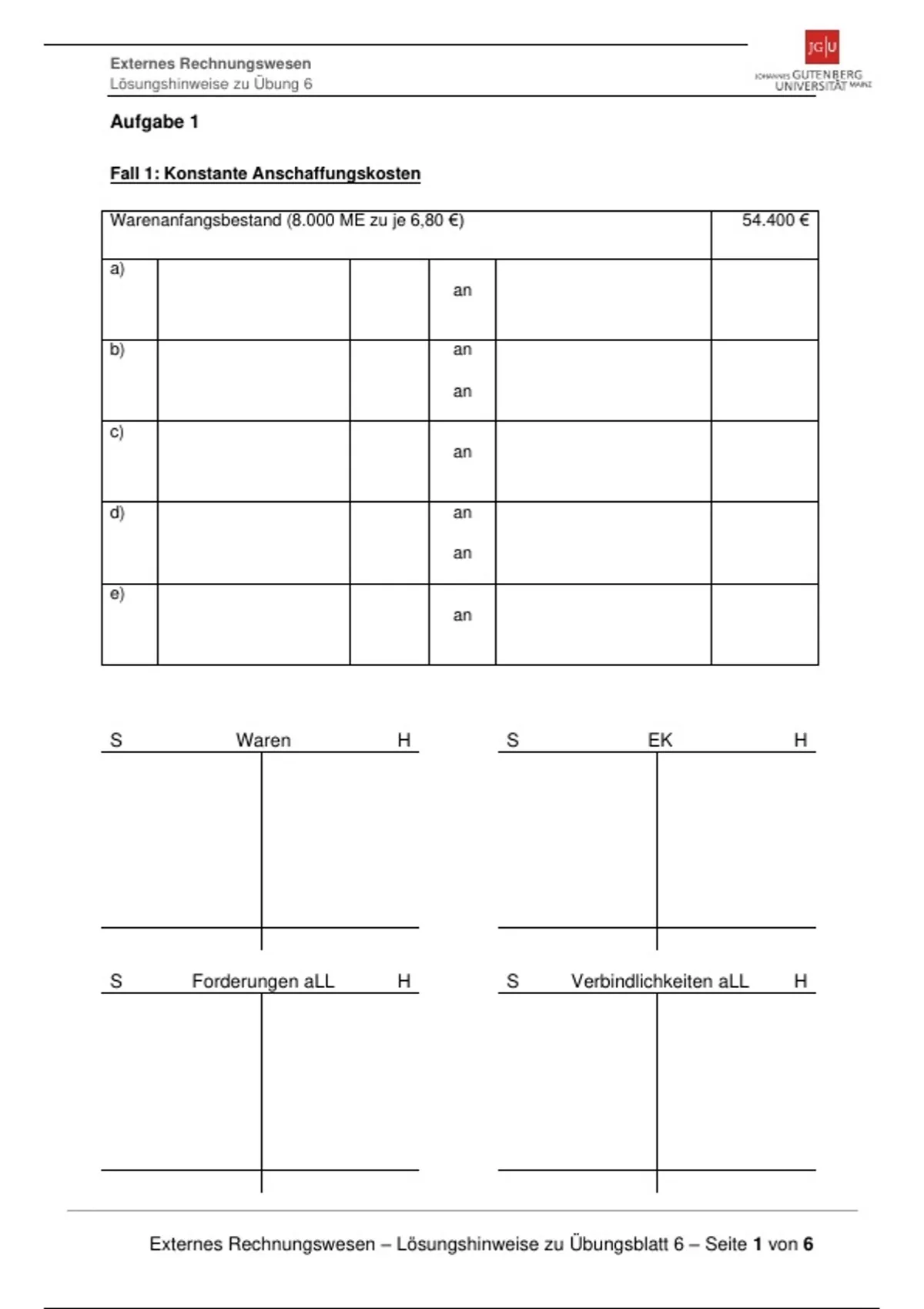 Externes Rechnungswesen – Lösungshinweise zu Übungsblatt 6 – Seite 1 von 6